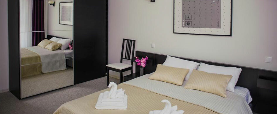 - Просторные номера (в некоторых — 2 комнаты, большая ванная).