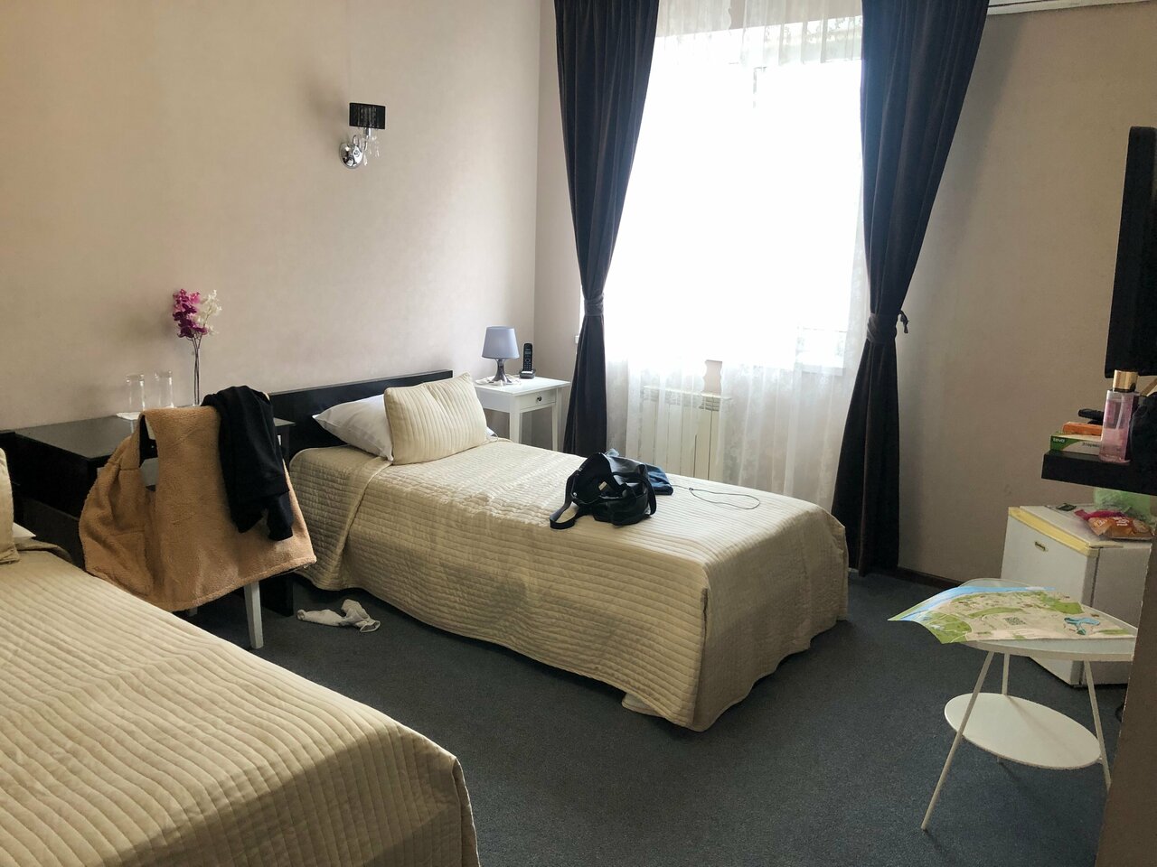 Отель очень понравился. Забронировали по телефону, без предоплаты. Жили в семейном номере — 2 комнаты и огромная ванная комната с ванной и душевой кабиной. 2 кондера, 2 телевизора. Все принадлежности выдали, утром накормили. Спасибо!