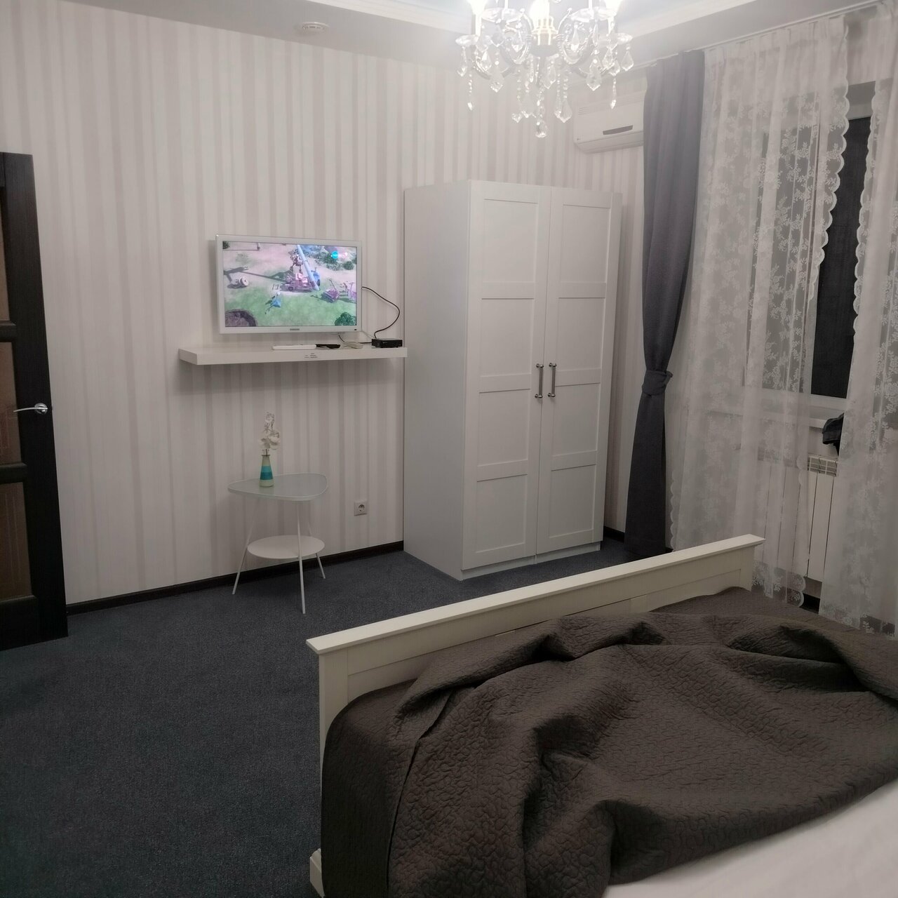 - Работающий кондиционер и телевизор.