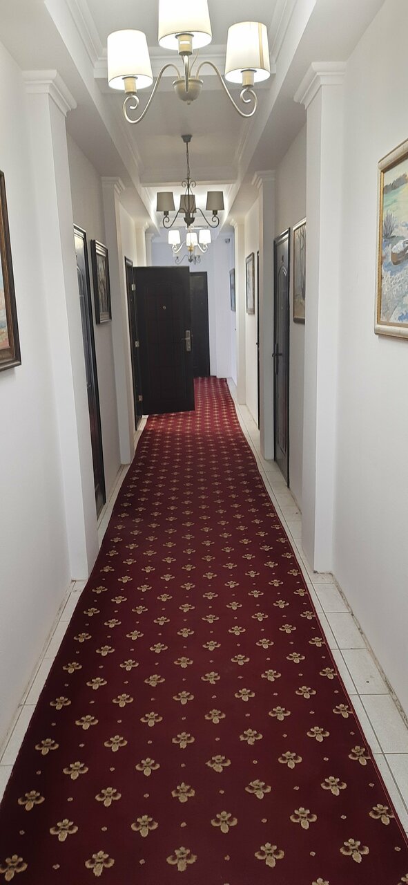 Останавливались в этом отеле на 2 ночи. Парковка небольшая, но места хватает. В номере оказалось ни очень чисто: на ковре крошки, тумбочки в пыли. Кресла обшарпанные. Постельное белье чистое. В номере есть: холодильник, чайник, кондей, телевизор. В ванной был закрыт слив и поэтому вода уходила очень и очень медленно. На 1 этаже банный комплекс. Один раз было шумно днём, но это не критично. Завтраки с 9 утра, можно заказать дополнительно. На завтрак была овсяная каша, 2 жареных яйца, жареная ветчина, чай или кофе на выбор. Завтрак был вкусный (готовят они не сами, а им откуда-то привозят)
