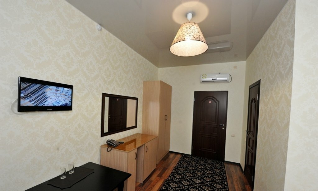 Небольшой уютный номер со всеми удобствами. Номер оснащен мебельным гарнитуром, телевизором, телефоном. Ванная комната оснащена душем, туалетом, раковиной, феном. Так же в ванной комнате есть необходимые принадлежности, такие как: мыло, шампунь, г...