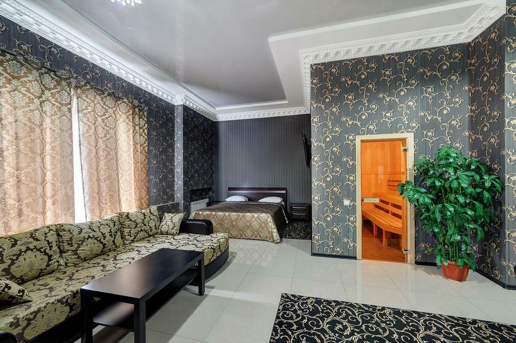 Номер просто супер. Номер люкс огромный комфортный стильный светлый есть большая джакузи и своя сауна ))) мы довольны выбором