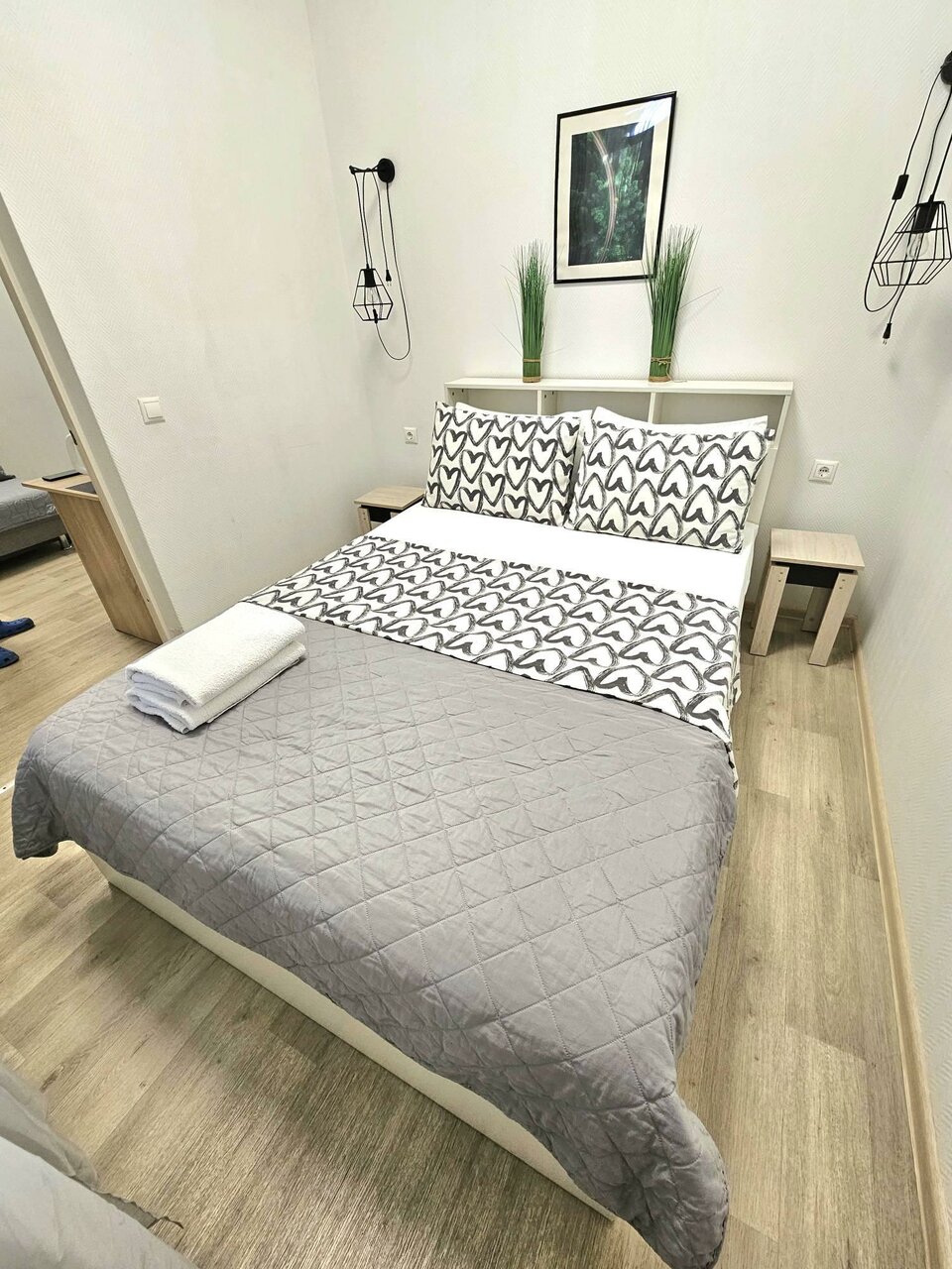 Уютный , стильный номер с двухспальной кроватью и собственной ванной комнатой
