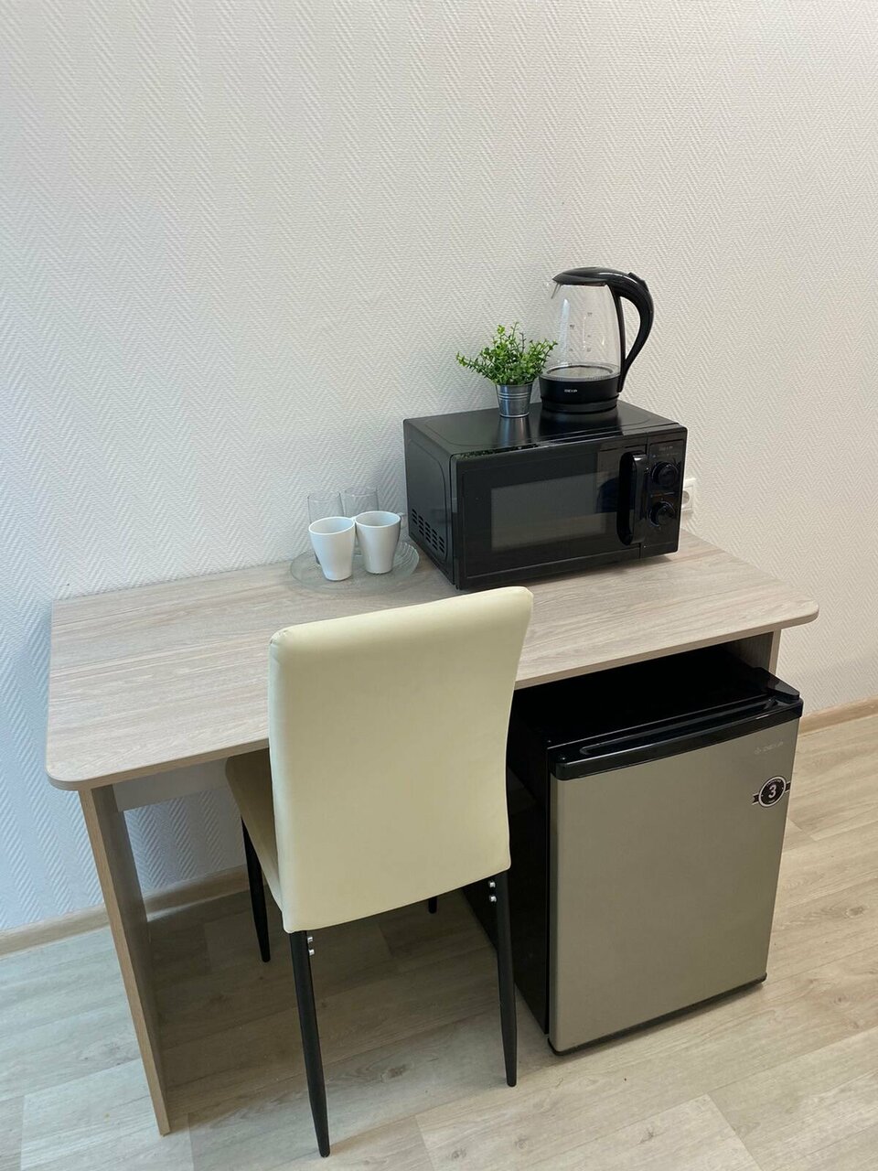 Очень уютно! Чистенько! Всё продумано! Расположение очень удобное, рядом рынок, магазины, аптека. Отдельное спасибо персоналу! Елена, Наталья, Евгения! Всегда с улыбкой. Очень тактичные, приветливые и вежливые! Заезжали поздно вечером, нас встретили! Всё показали, всё с улыбкой! Огромное спасибо! Номер очень компактный, но всё есть! Чистая, удобная кровать, санузел без запаха и пятен, микроволновка и чайник в номере-это очень удобно! Есть отдельная общая кухня, оснащённая всем необходимым! Впечатления только со знаком ‘+’! Большое спасибо!