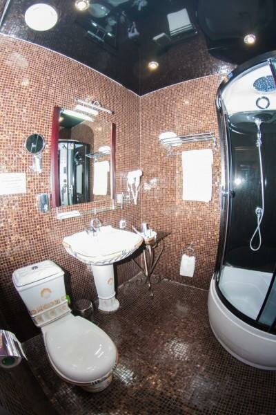 Хорошая гостиница. Большие, просторные и уютные номера. Чисто, тепло. Понравилась отделка ванной комнаты. Утром завтрак из нескольких блюд на выбор. Приятное и доброе обслуживание, девушки стараются. Своя автостоянка. На ночь не закрывается, охрану не видел. Местоположение неплохое, но красот мало — гостиница находится внутри многоэтажных жилых домов. Цена номера, считаю, очень приемлемая, учитывая то, что за эти деньги могут поселить в каком-нибудь малоизвестном миниотеле на окраине города.