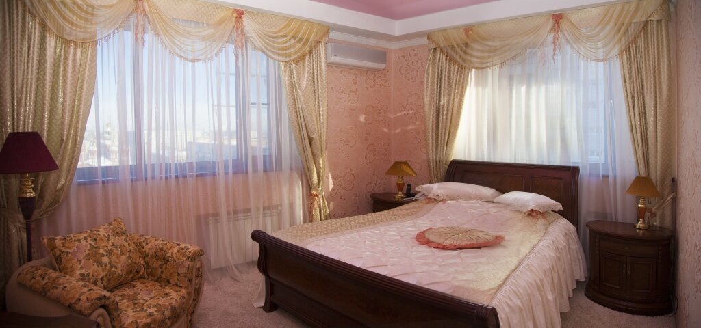 Сейчас гостиницу»усекли»…оставили только номера.а прежде был шикарный ресторан.просторный холл.Номера хороши.с претензией на пампезность))).Есть парковка.в 5минутах от общественного транспорта.Ворошиловский район.