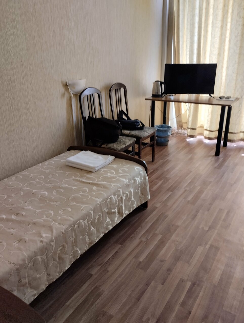 Взяли трёхместный номер. Хороший косметический ремонт, есть кондиционер и холодильник, что очень важно, так как попали в жару. Очень красивый вид из окна на Волгу. Только окно не мытое, что портит впечатление. Уборщица не убирала номер ни разу за наше прибывание в 5 дней. Правда по нашей просьбе один раз убрала мусор. В коридоре есть утюг и микроволновка. В целом за небольшую цену 4300 в сутки условия хорошие.