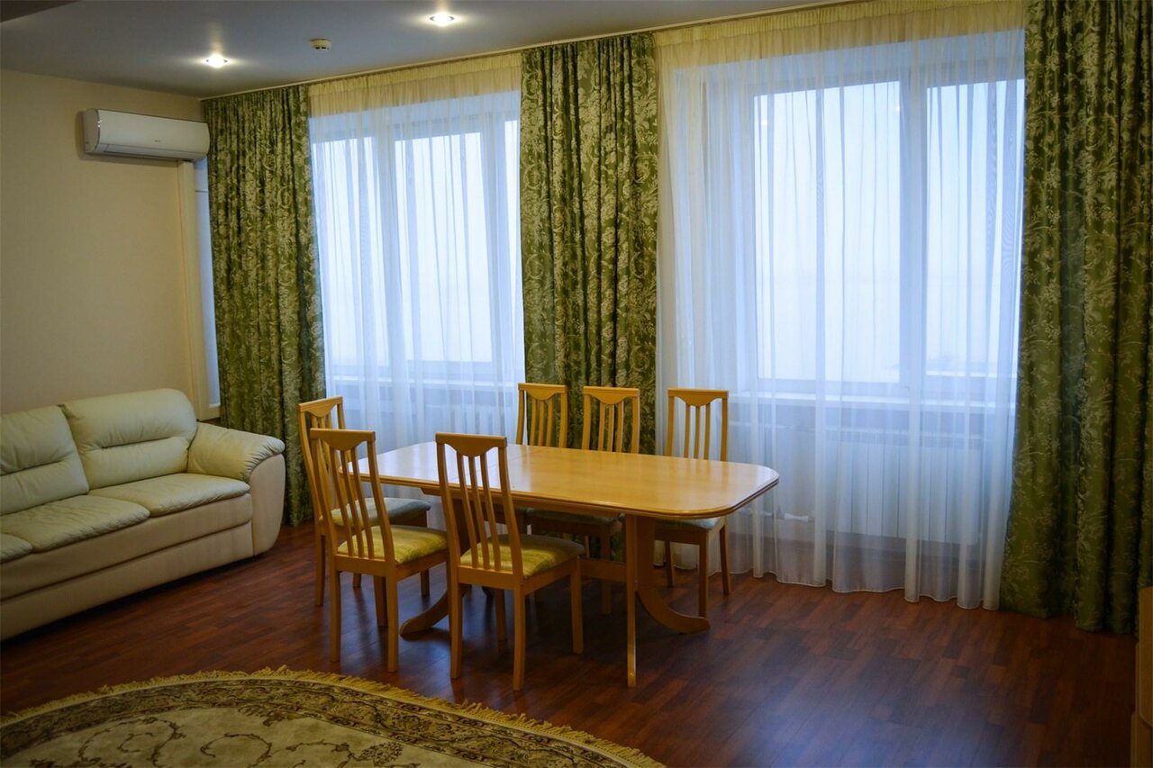 По дороге на юг искали где нам переночевать. Для семьи из 2 взрослых и 3 маленьких детей оказалось не так просто найти свободный номер для ночлега во всем Волгограде. И вот случилось счастье что только в этой гостинице был один свободный 2х комнатный номер. Яб сказала что дороговато за такой номер. Ибо в Краснодаре уже было намного больше предложений и в несколько раз комфортнее (современнее). Мебель в номере старенькая, а этот палас в комнате так вообще. У одного ребёнка аллергия на пыль, ну ниче ночь пережили. Номер был на 13 этаже. Душно ниче не сказать, было ужасно жарко. Вид из окна конечно потрясающий. Персонал очень милая женщина. С парковкой не совсем понятно, у центрального входа знак о платной парковке, но можно поставить где-то сбоку во дворе. Вообщем в целом не плохо, пойдёт.