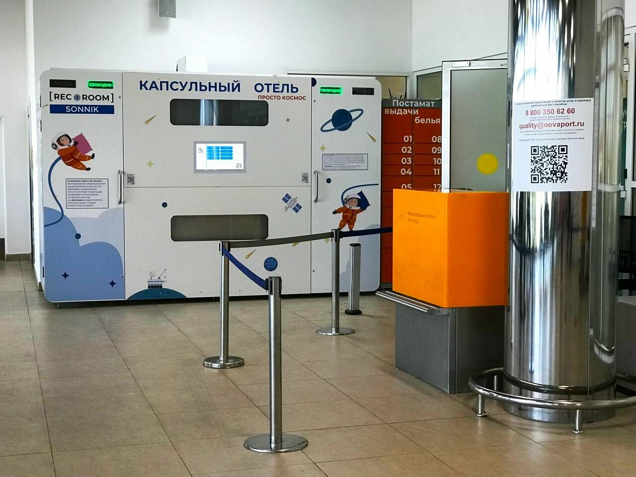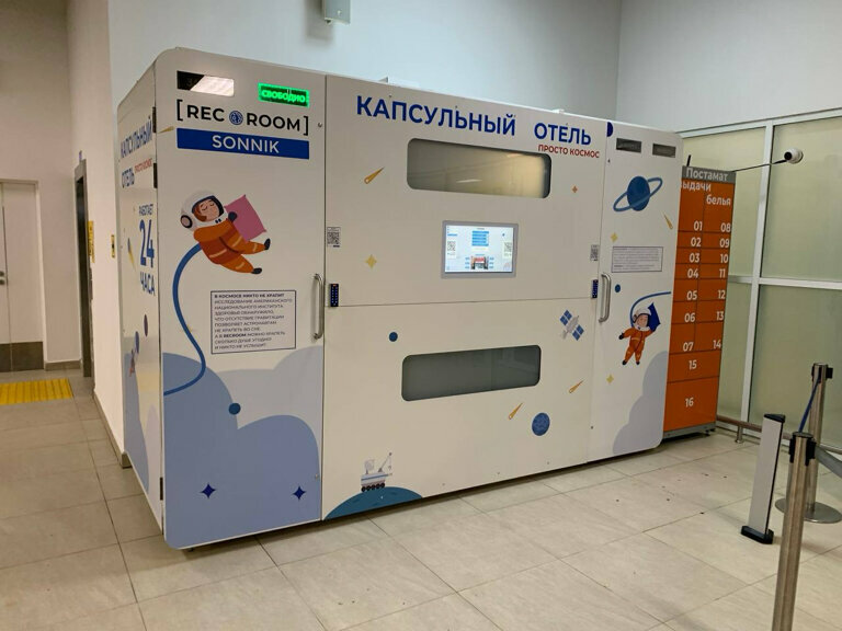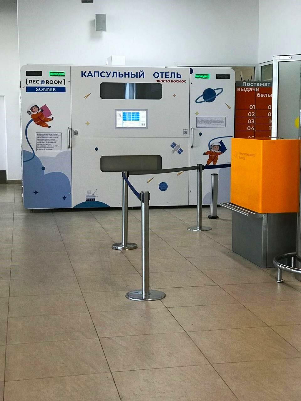 RecoRoom Sonnik Волгоград — недорогая капсульная гостиница, расположенная на втором этаже терминала вылета аэропорта Волгограда (шоссе Авиаторов, 161). Открыта круглосуточно, предлагает звукоизолированные номера для некурящих с Wi-Fi и общим туалетом. Услуги включают парковку, велопарковку, камеру хранения и уборку. Питание не предусмотрено. Цены стартуют от 1000 ₽ за ночь. Подробности на сайте: https://www.rec-room.ru/. Контактный телефон: +7 (499) 113-64-66. Построена в 2024 году.