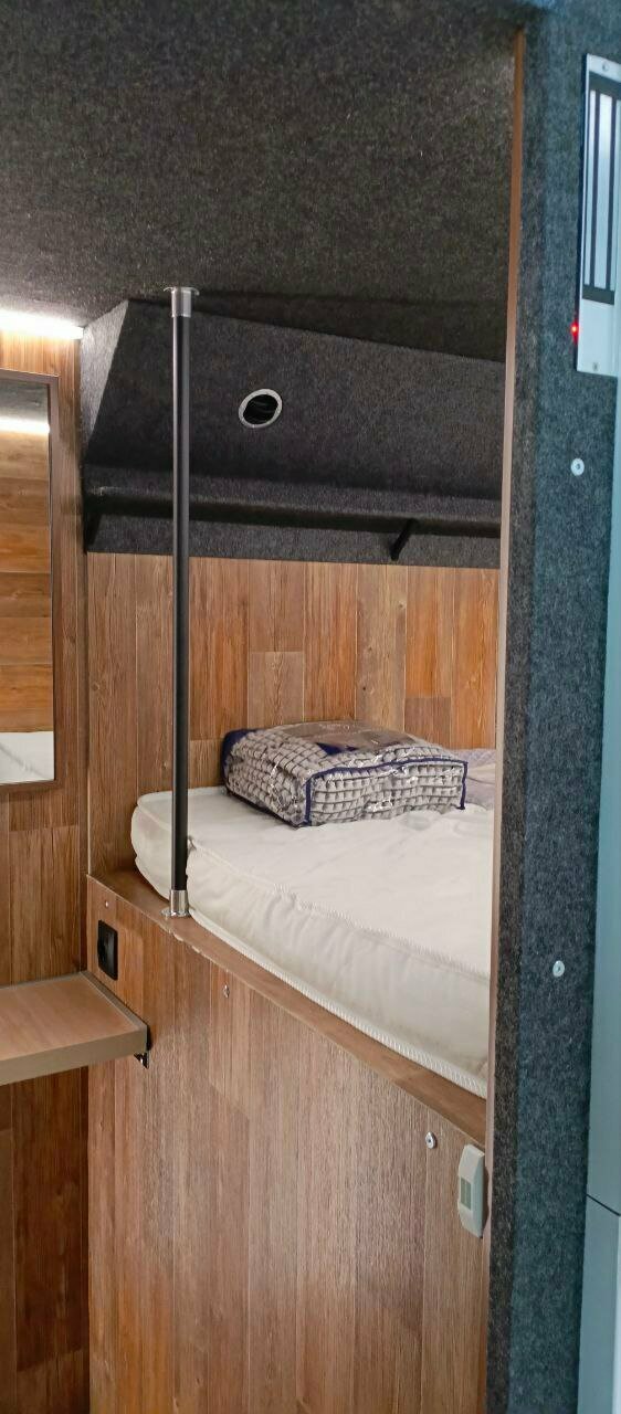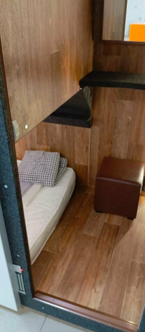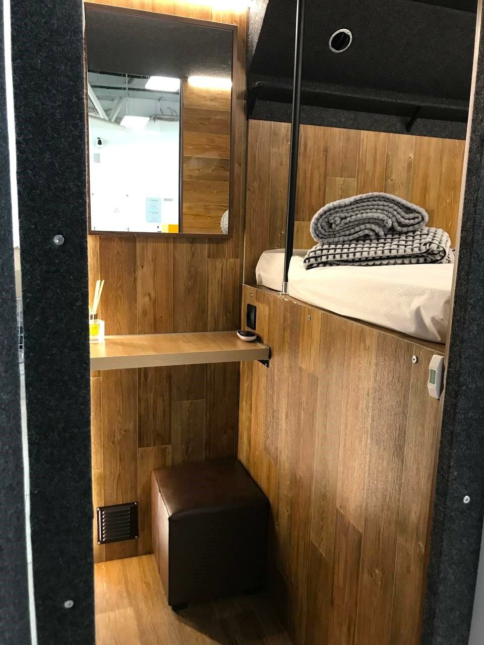 Очень удобная во всех смыслах штука! Отправлялись на семейный отдых, но рейс задержали и это чудо техники оказалось как нельзя кстати. Удобные спальные места, хорошая звукоизоляция, в каждой кабинке есть розетки с юсб зарядкой и вайфай. Вполне демократичные цены. Мы арендовали две кабинки, верхнюю и нижнюю. Два часа пролетели незаметно.