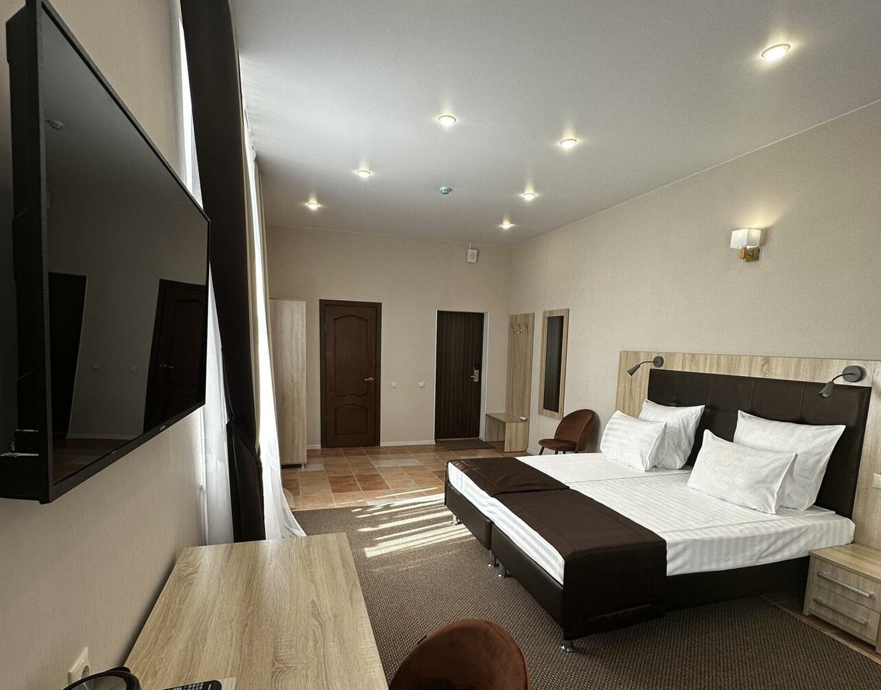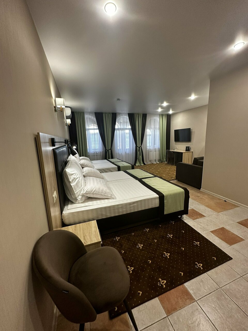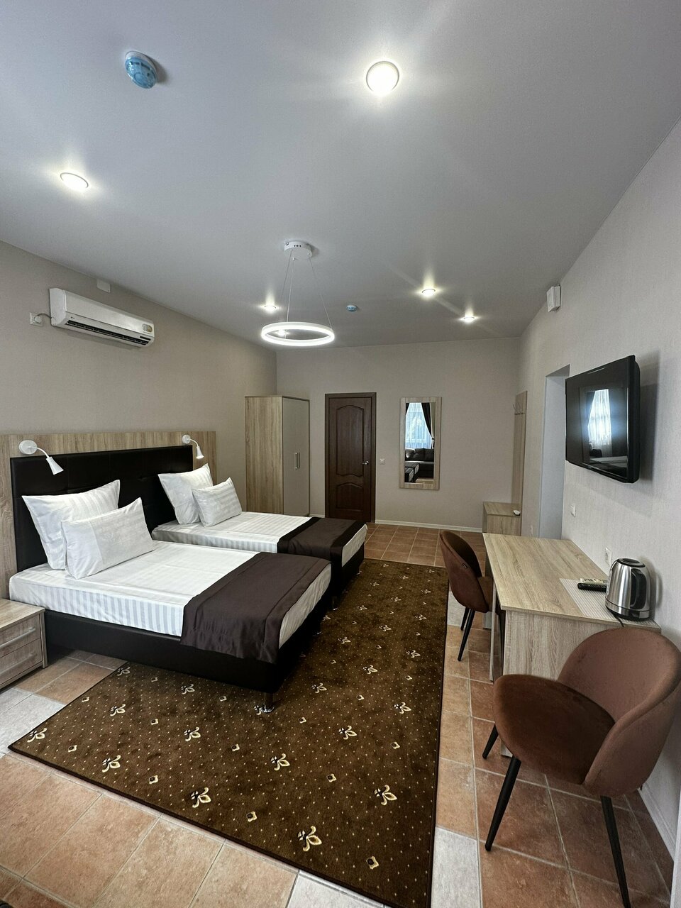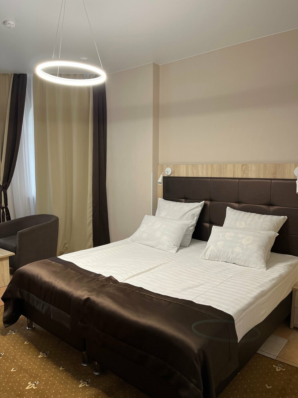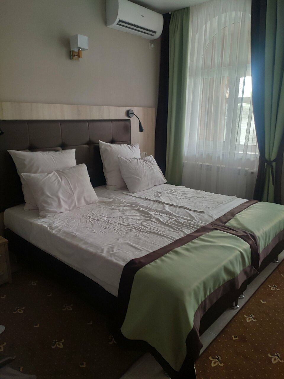 Отличная гостиница, хорошие номера. В номере есть чайник, холодильник, сплит, телевизор, фен. Отзывчивый персонал, вкусные комплексные завтраки. Очень красиво во дворе, много растительности