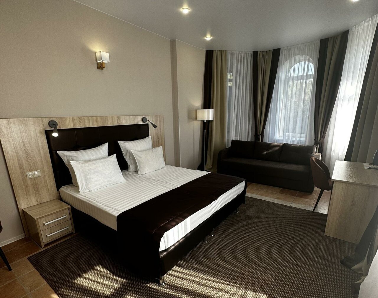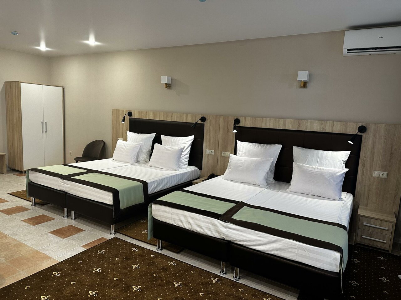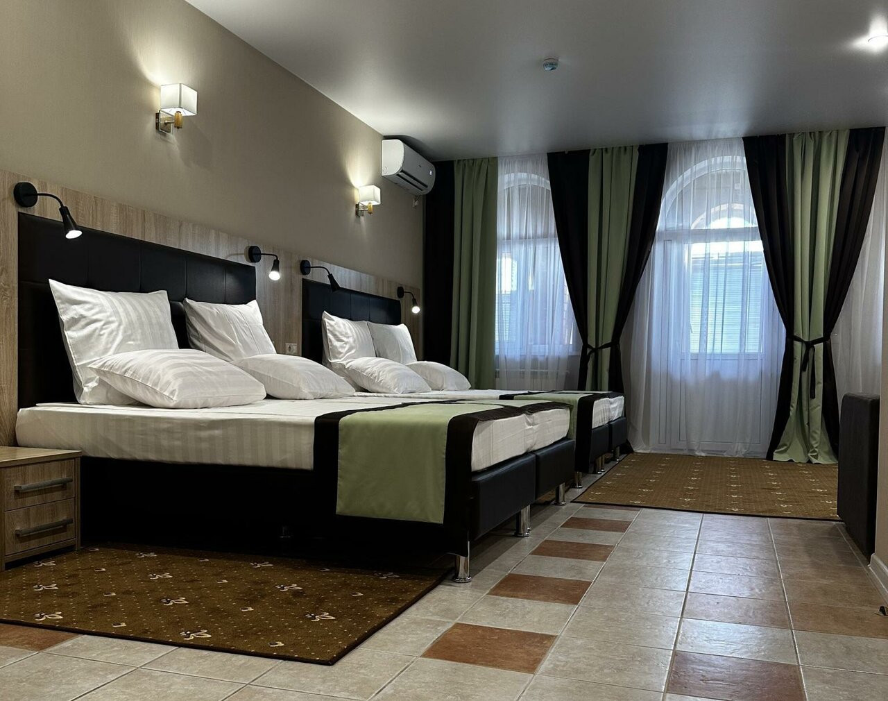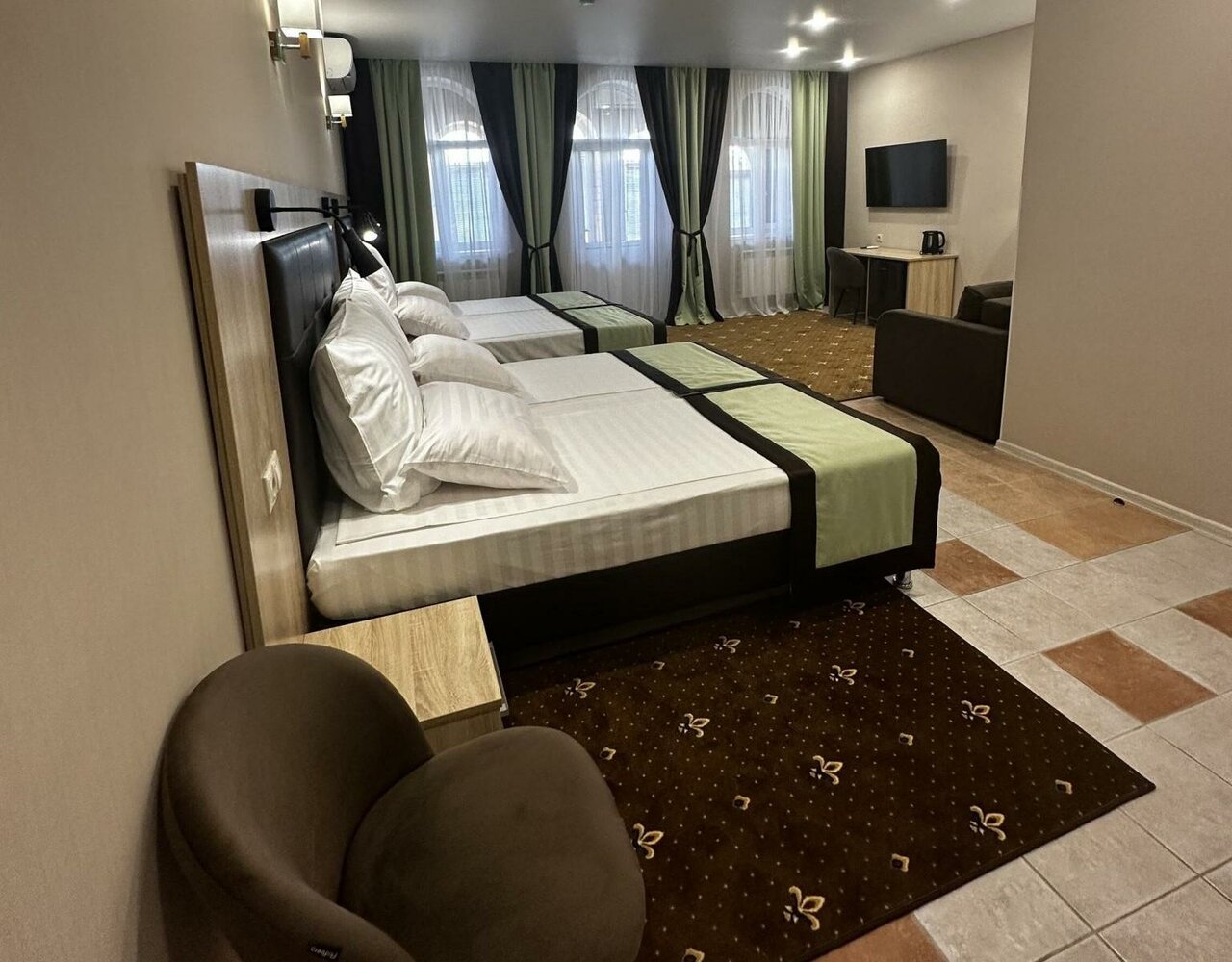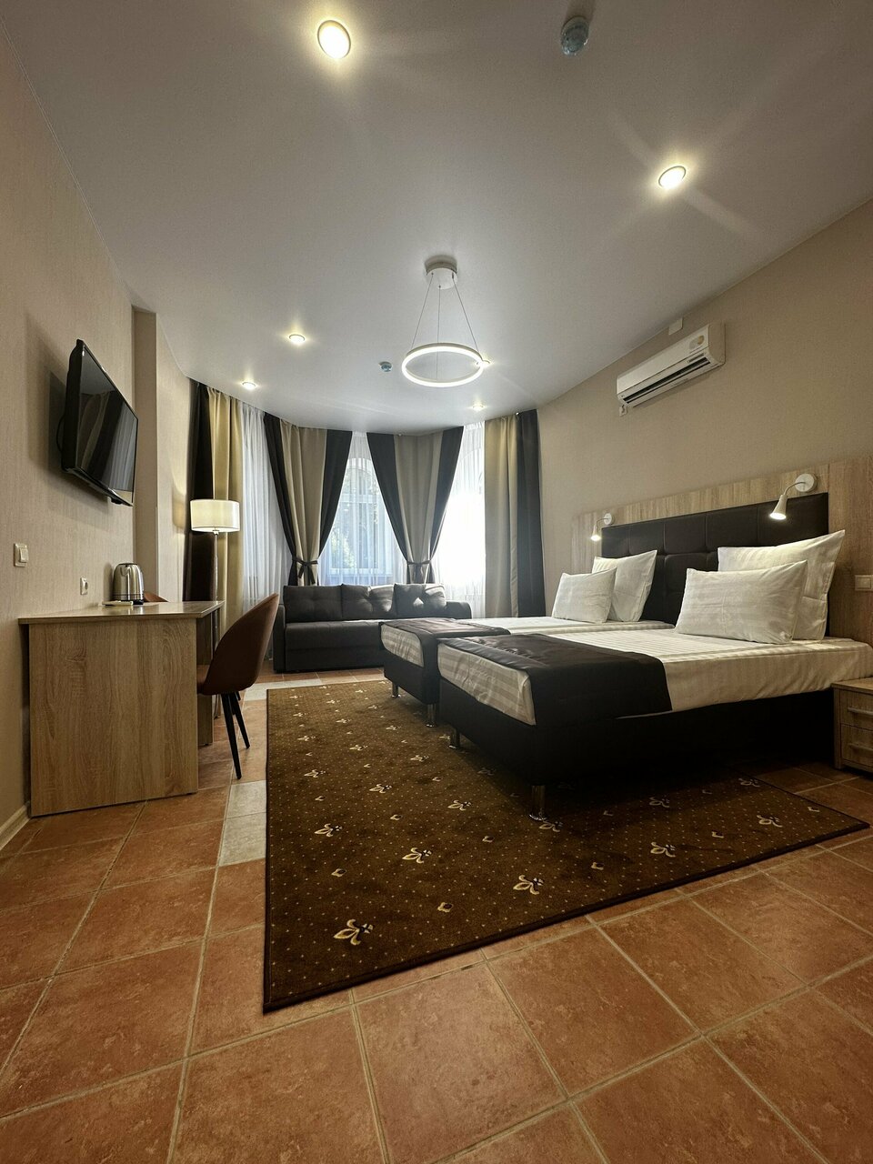 Отличная гостиница, хорошие номера. В номере есть чайник, холодильник, сплит, телевизор, фен. Отзывчивый персонал, вкусные комплексные завтраки. Очень красиво во дворе, много растительности