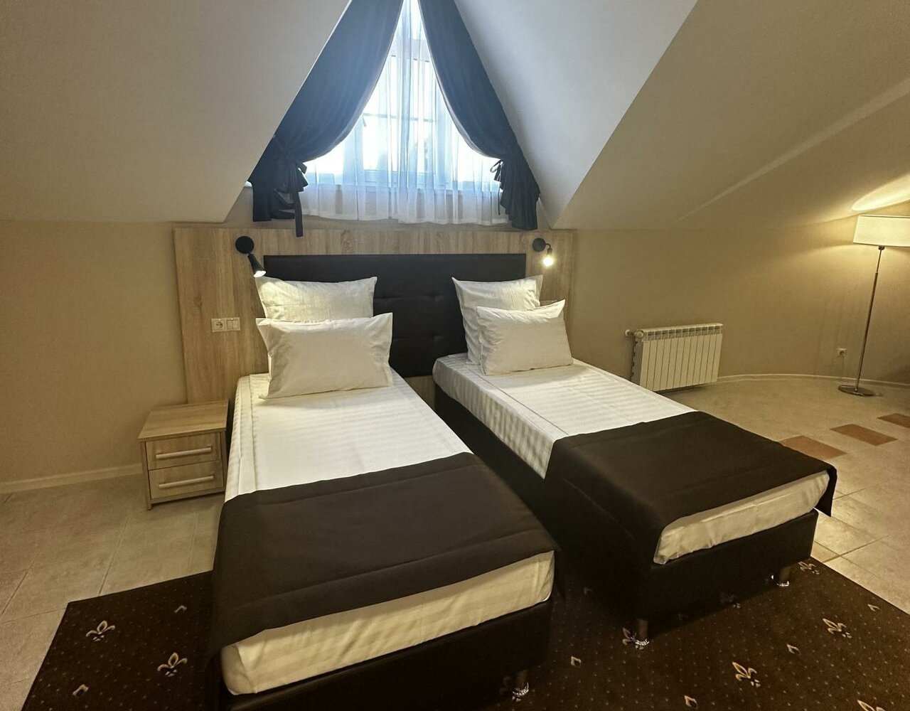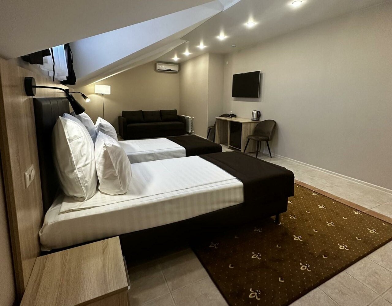 Завтрак включен в стоимость номера. В каждом номере две односпальные кровати, либо одна двуспальная (Double/Twin), диван.
