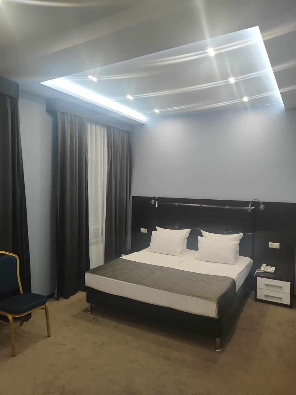 Отличный отель для отдыха по пути в сторону Дагестана или Астрахани. Находится на окраине, где уже меньше машин и шума. Номера хорошие , большие , все необхимое от полотенец до зубных щеток имеется. Парковка собственная. Постельное белье и матрасы без нареканий , все для удобного отдыха после дороги . Единственное, что надо отметить для самых привередливых, часть окон выходят на пром зону, но для нас это был плюс, т.к. после дороги хотелось тишины и спокойствия.