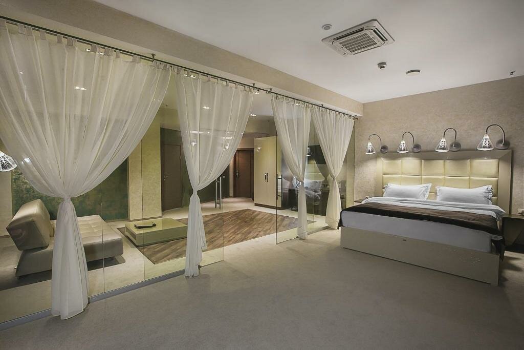 Снимали с мужем люкс, вау эффека не произошло, за такую стоимость прям совсем неочень, ещё и воды без газа в бутылках не было, пришлось носить стаканами в номер самой телефона для связи с персоналом тоже нет окна не мыты, потому что 25 этаж наверное, ну вобщем цена такому номеру не соответствует)