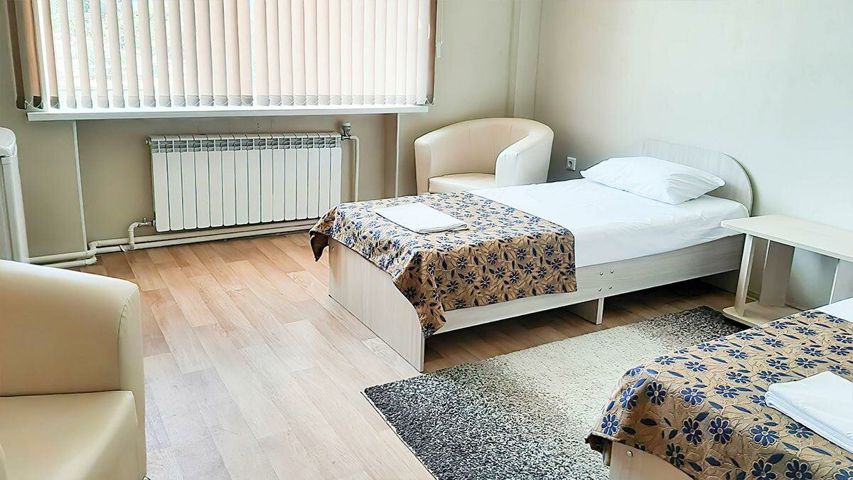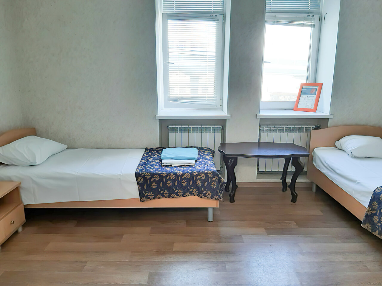 Находится прямо на вокзале. Очень удобно остановиться на несколько часов, передохнуть. Удобные кровати, душ в номере. Недалеко от вокзала продуктовый магазин и столовая.