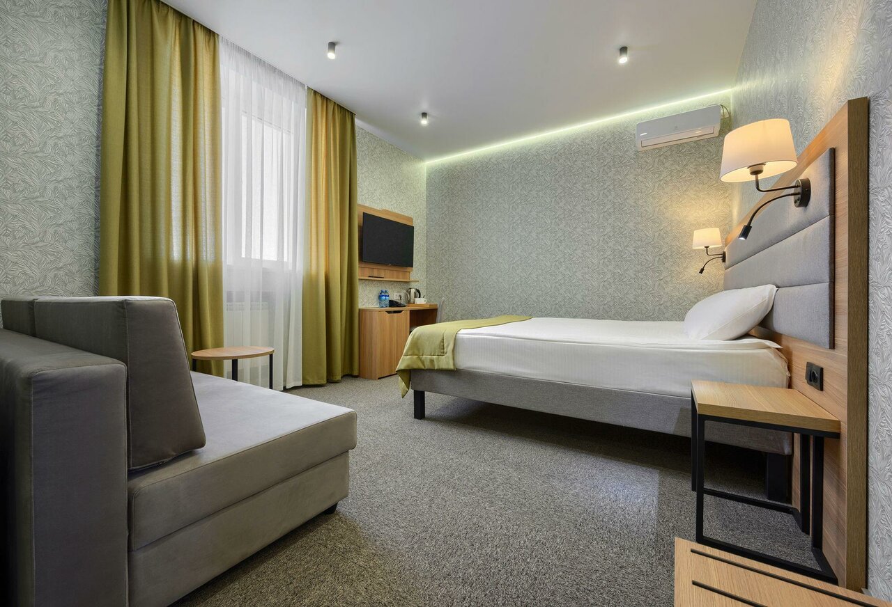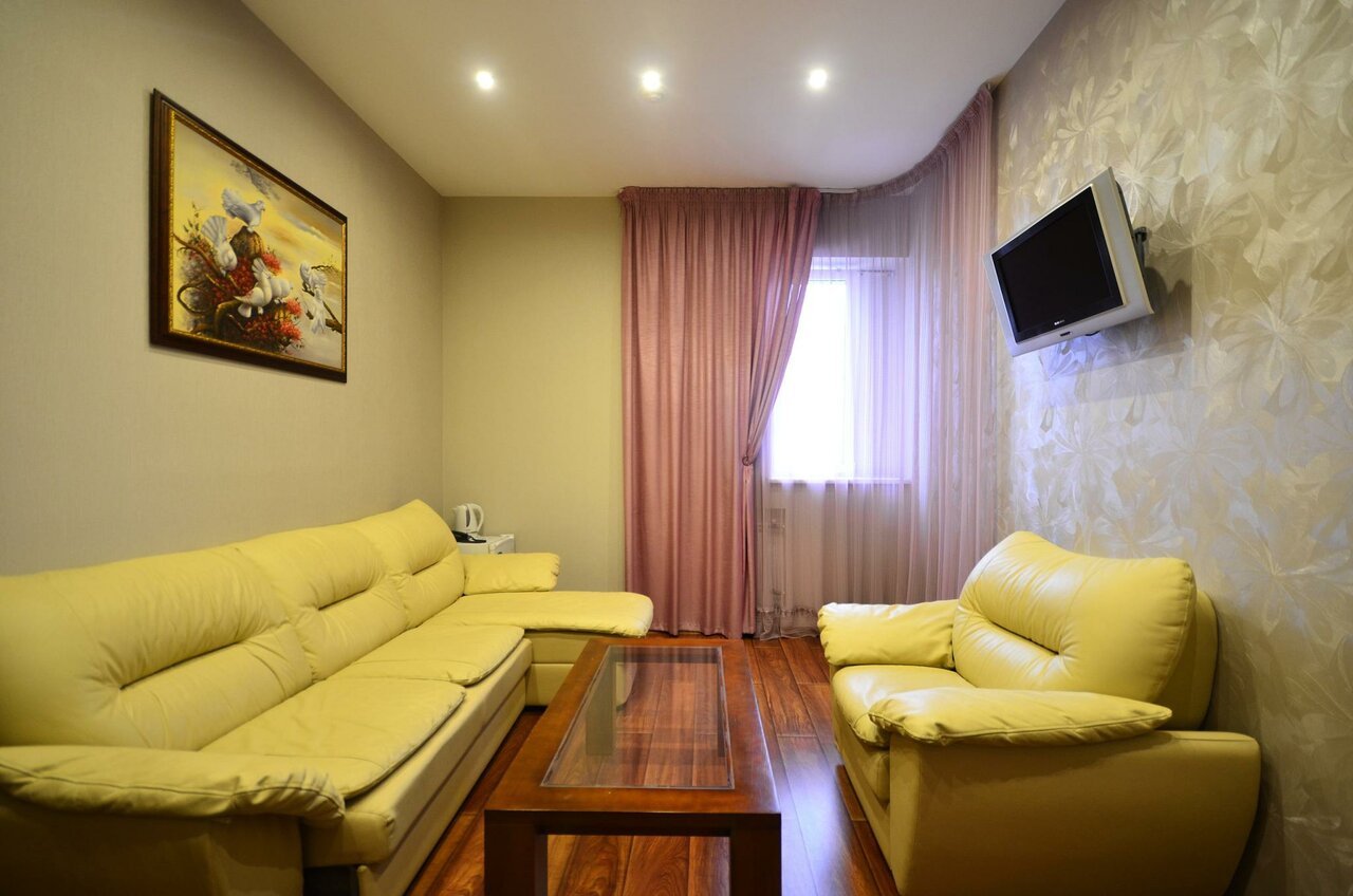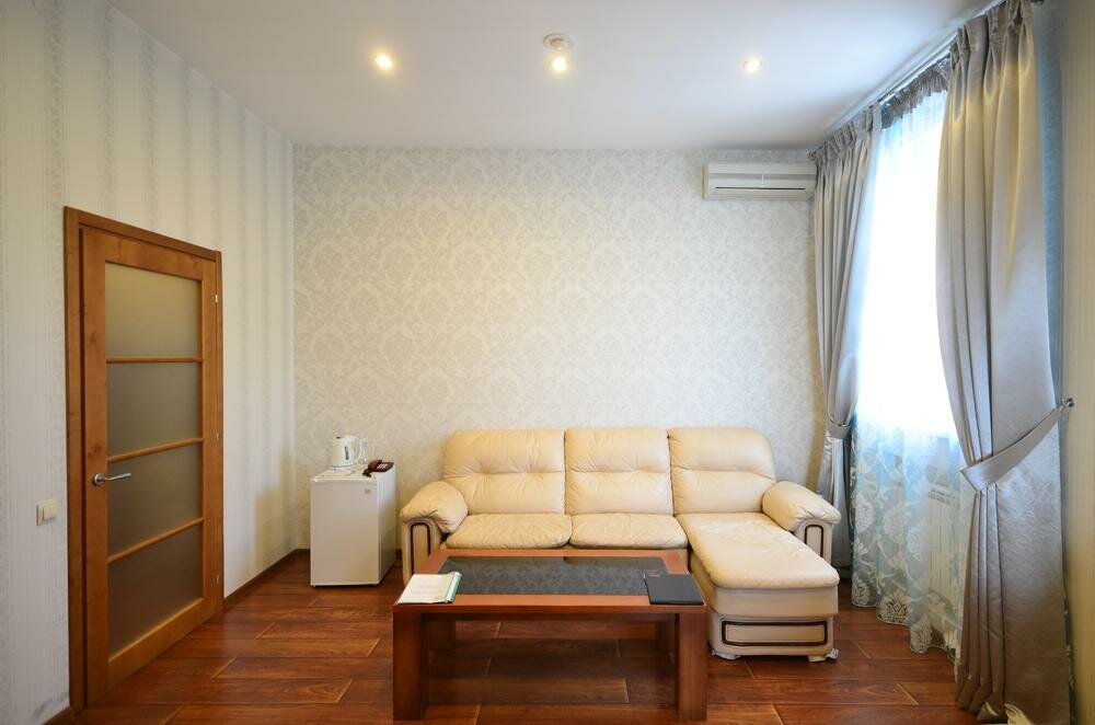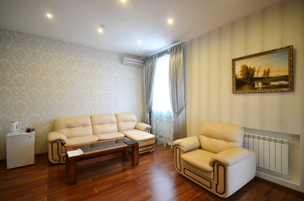 Первый плюс — это цена! Второй — дружелюбие и вежливость персонала. Снимали номер люкс на 4-х, были проездом в Волгограде, для Помыться, отдохнуть и переночевать — идеально. Номер оказался огромным, комфортным, очень чистым, в ванной джакузи, с дороги это Супер-плюс. Из минуса, но опять таки лично для нас — завтрак. Т.к. это просто возможность самим его сделать. В холодильнике Хлеб, масло, плавленные сырки и печенье. Чайник, чтобы сделать себе кофе или чай, который так же предложен отелем. Пять звезд ставлю, потому, что если мы так же будем когда-то проезжать Волгоград, я бы остановилась точно тут!