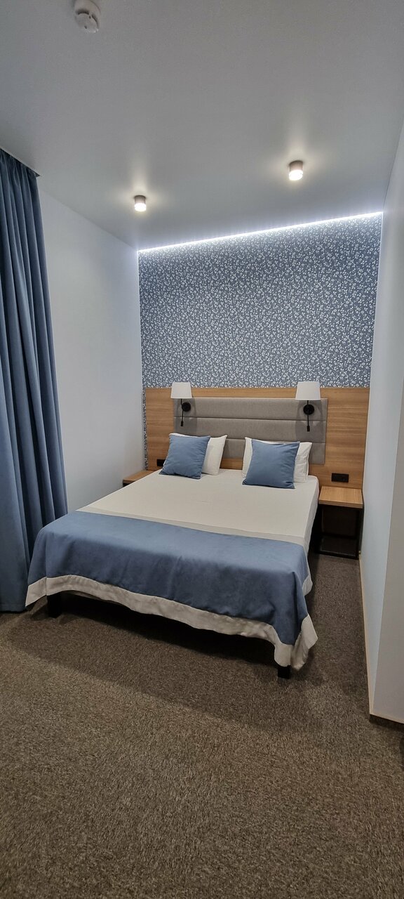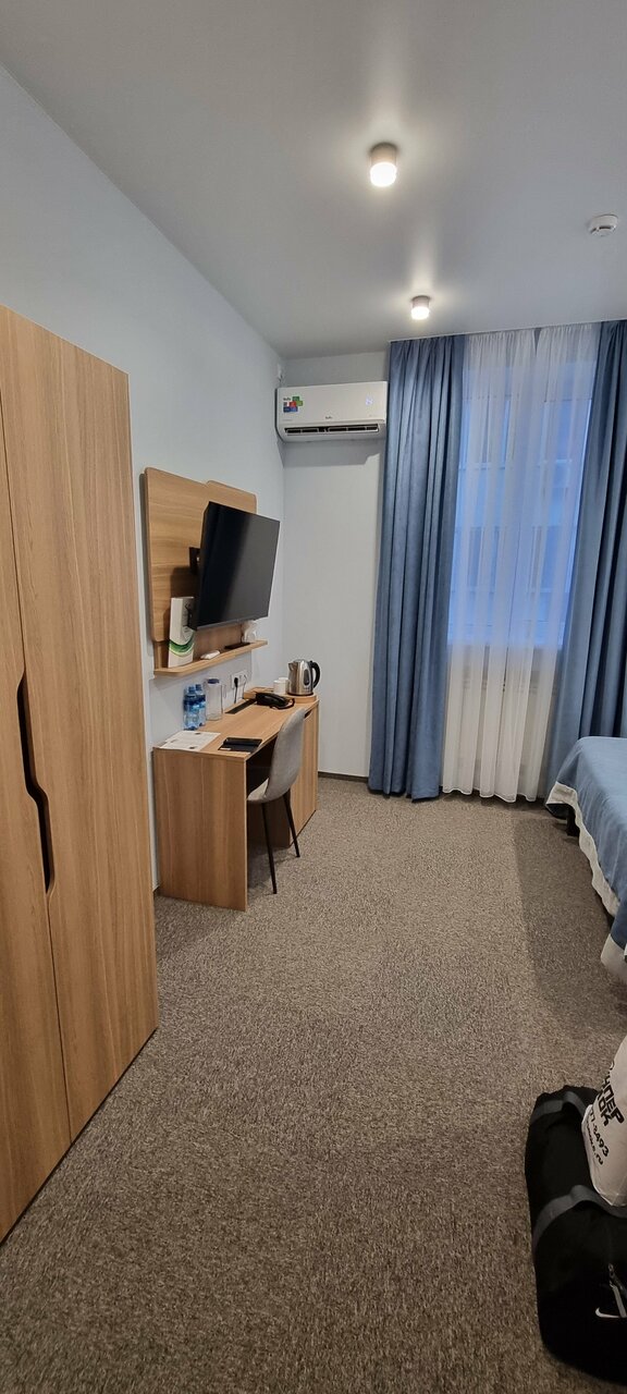 Большие чистые номера. Относительно близко к центру. Ресторан внутри работает до 22. Ассортимент не большой, но было вкусно. На завтрак шведский стол. Омлет, сосиски, немого овощей и фруктов, каши и т.п. в общем голодными не остались. Оценку снизил. За запах какой-то сырости или затхлости в номере. Начали проветривать номер, а там комары, река рядом, а вот на оконной сетке отель решил сэкономить. В результате окно пришлось закрыть. Удалось выловить порядка 5 комаров, некоторых уже с кровью. Рядом с отелем проходит большая дорога и для тех, кто чутко спит может быть шумновато, при открытом окне.