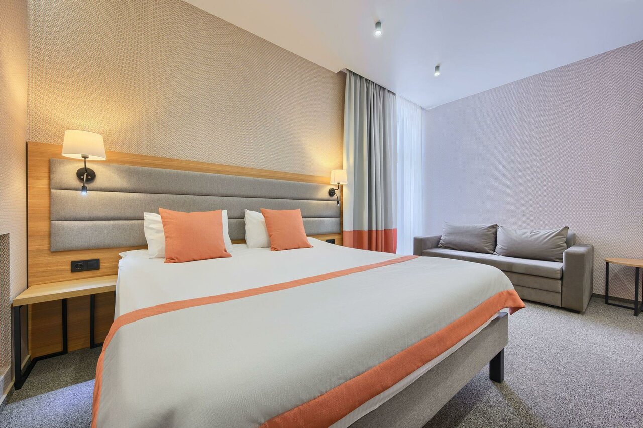 Отличное место для размещения) современный дизайн номеров , очень приятно находиться ) вежливый персонал, вкусные завтраки. Удобное расположение отеля