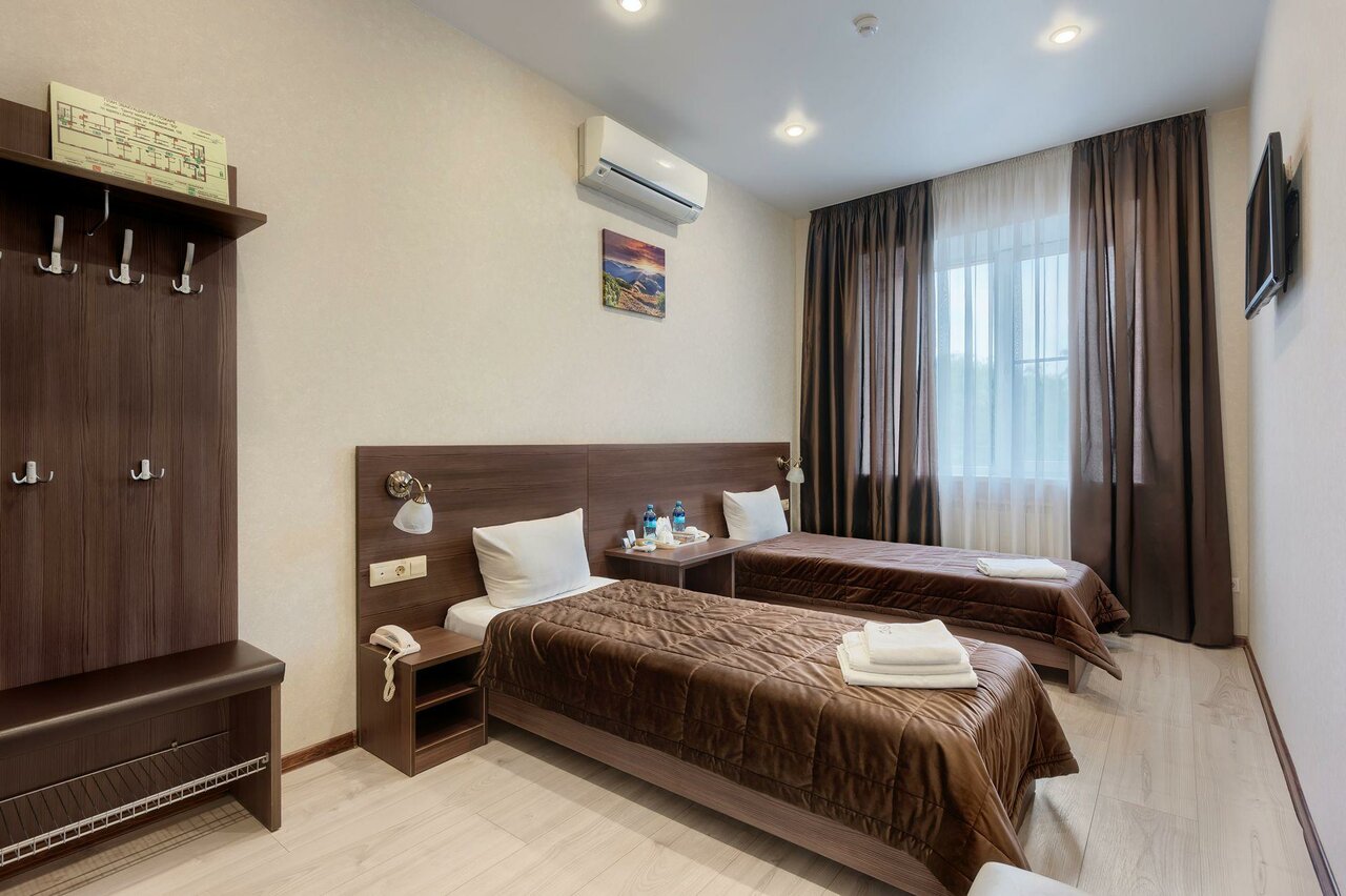 В Волгоград попали на одну ночь, приехали очень поздно. Нашли данный круглосуточный отель. Нас встретил гостеприимный персонал, заселились в номер. В номере все чисто, кровать удобная, постельное белье белое, без запаха. В номере есть все необходимое, чайник, холодильник, чай, кофе. Нам понравилось, рекомендуем.