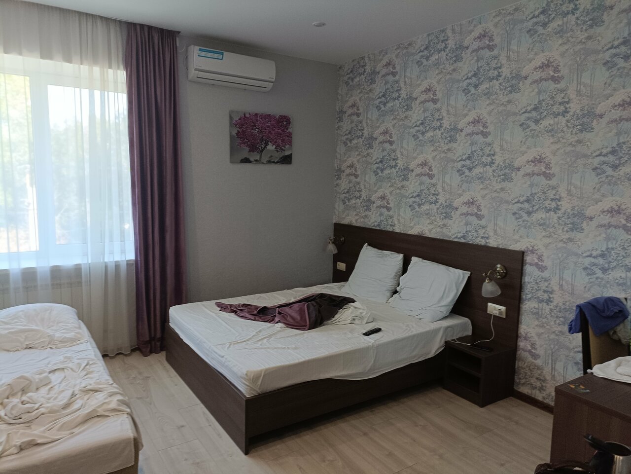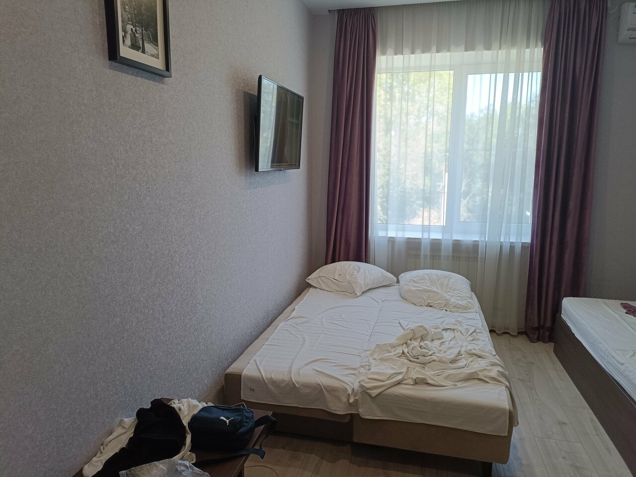 Останавливались в семейном номере. Неплохая гостиница за небольшие деньги. Необходимые условия есть. Плоховато работал кондиционер. Рядом магазин ‘Магнит’.