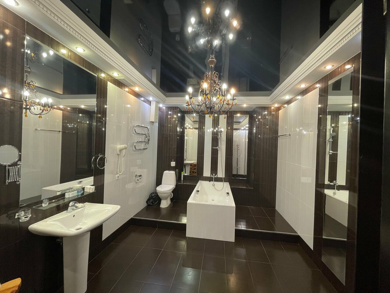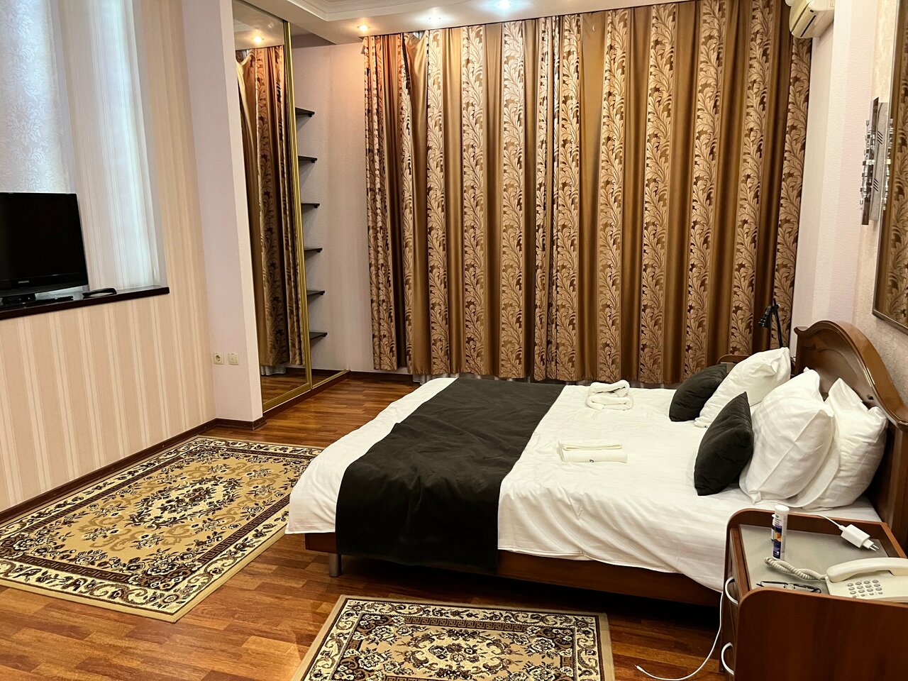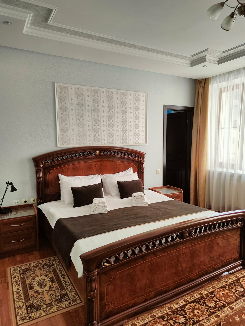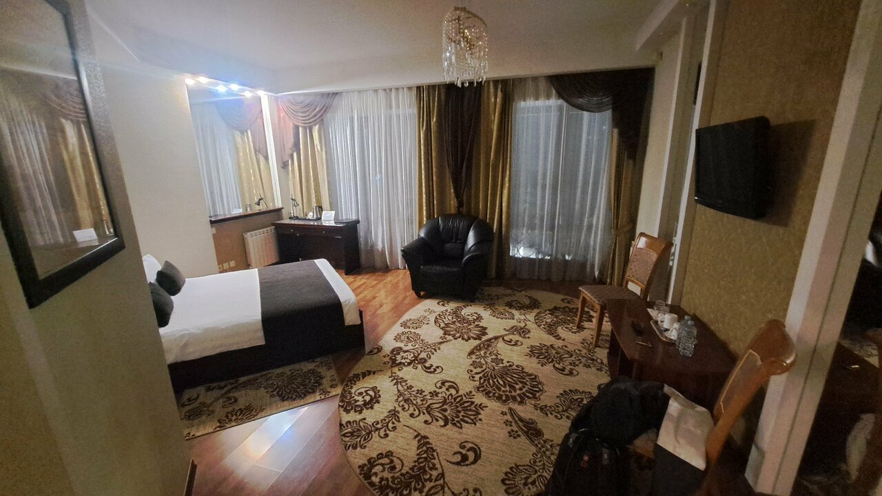 Очень хорошие номера, мы жили в люксе. Просторный, в стиле сталинского ампира. Завтрак очень вкусный, заботятся, чтобы все всё поели, персонал на ресепшене приветливый и очень заботливый. Огромное спасибо!