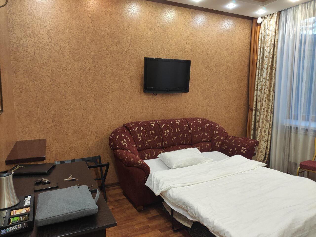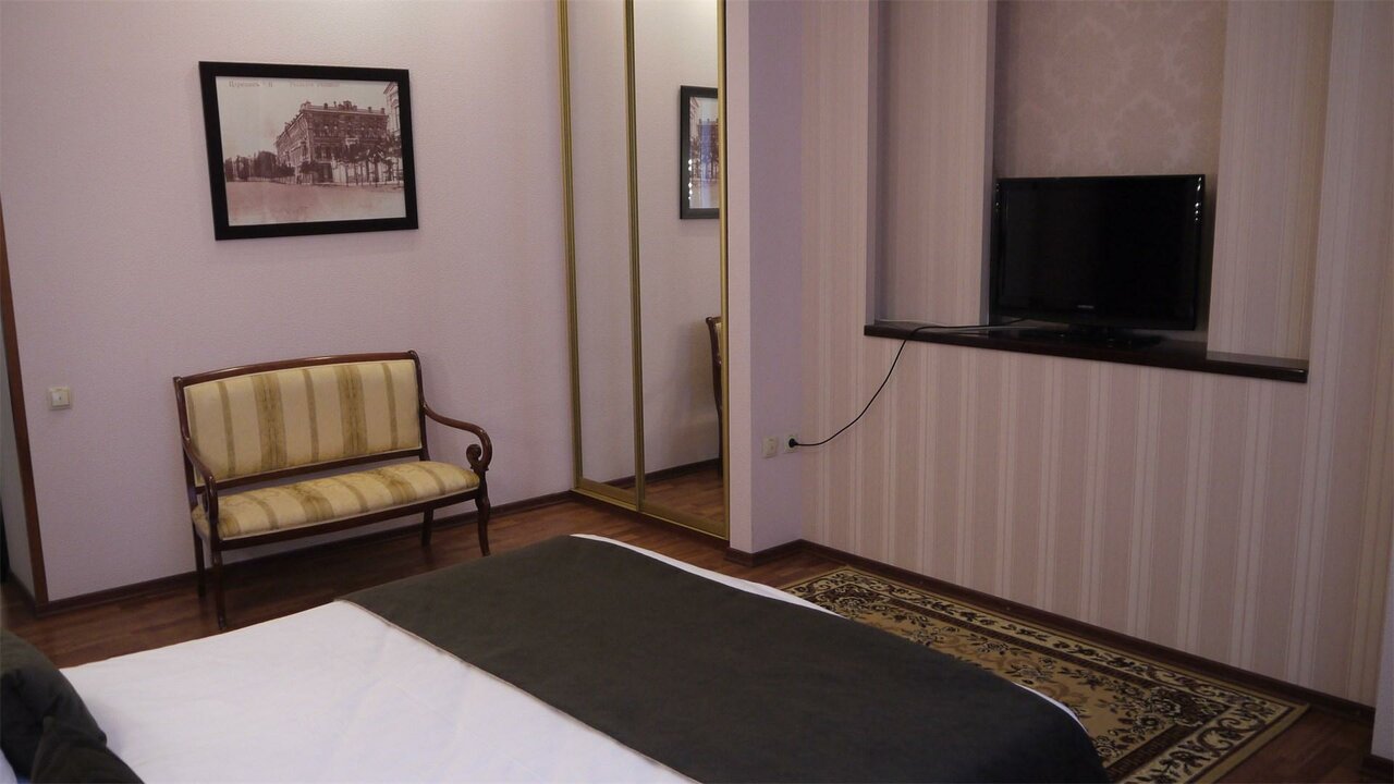 Уютная ,добротная гостиница. С претензией. Там все продумано. Красивые лифты . В номерах высокие потолки,сами номера большие . Хорошая звукоизоляция .Остались очень довольны. Выспались)