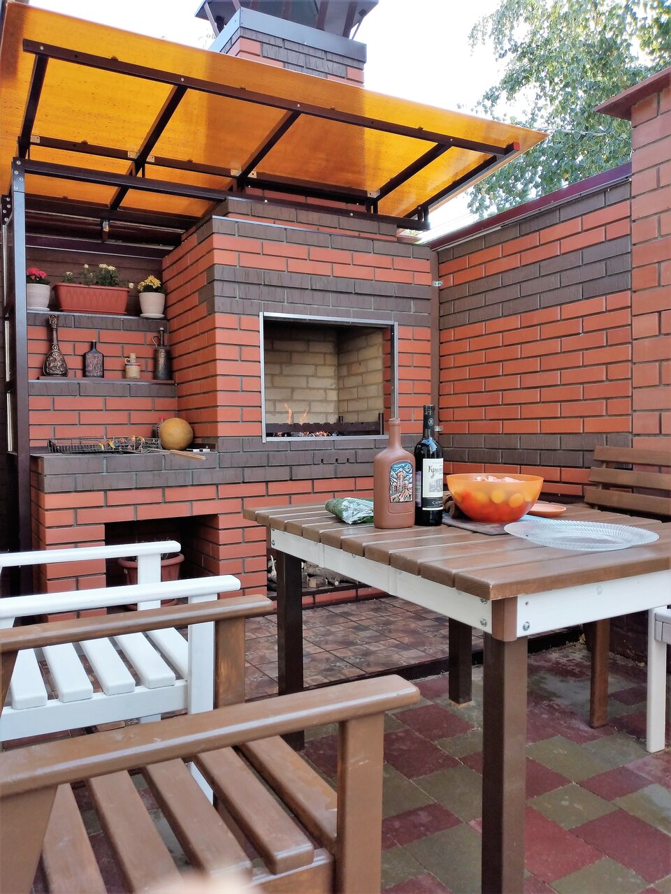 немного напрягло, что пахло газом на кухне. грилем во дворе пользоваться хозяйка не разрешает. расположение удобное, если вы на машине. интересный дизайн интерьера.