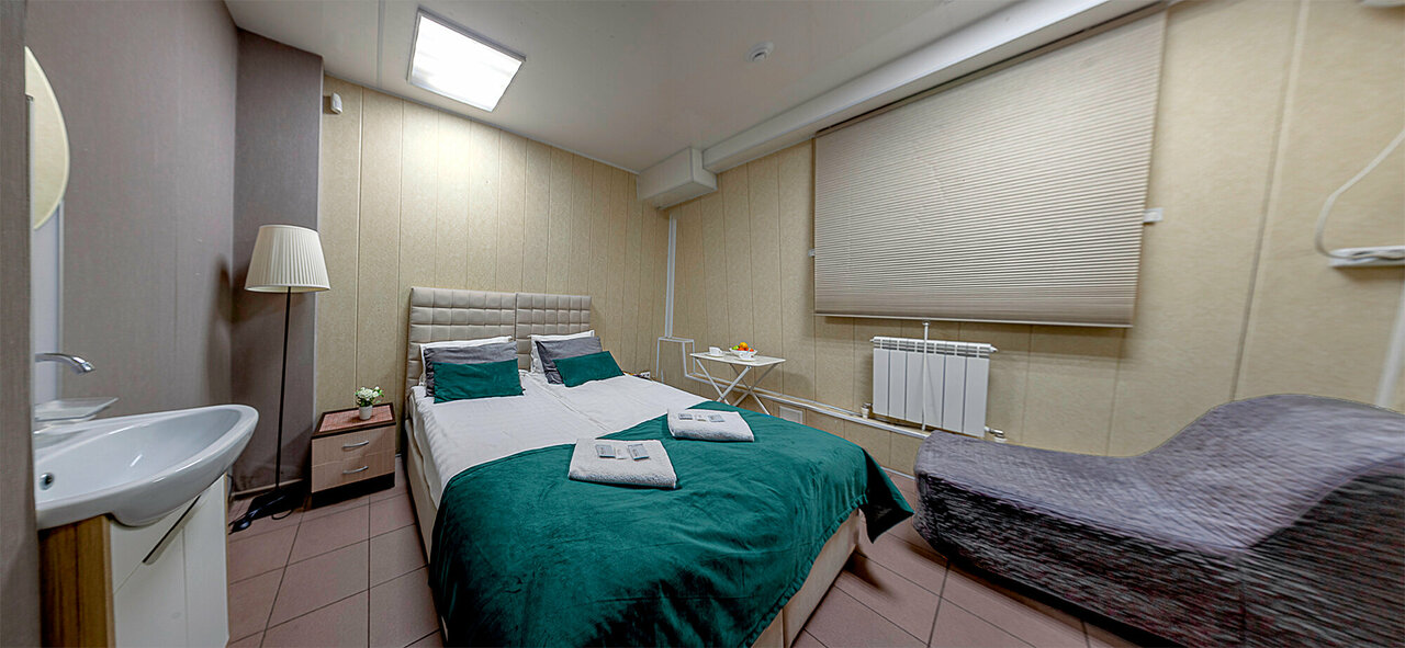 Апартамент четырехместный. Апартамент расположен на минус первом этаже. Имеет небольшое окно, можно отдыхать в полной темноте.Для Вас в номере доступно:- Большая двухспальная кровать 160*200, которую при желании можно раздвинуть, получится две о...