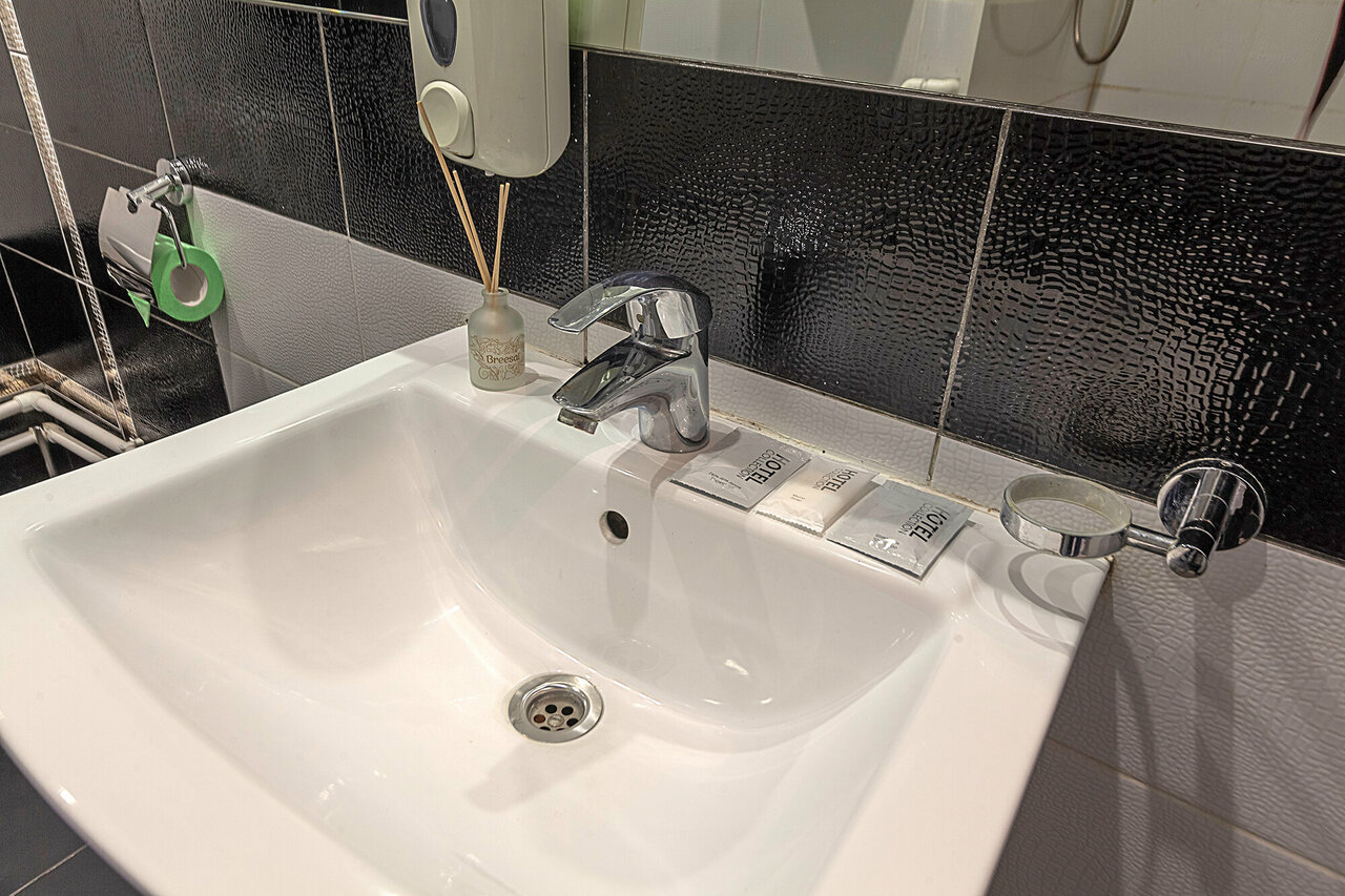 Комната с кроватями отдельная, общая душевая и уборная. Отель представляет собой два этажа (как бы подвал и первый этаж), всего 7 номеров, кухня тоже общая. Чисто с ночёвкой — нормально, если планируете ‘бросить’ кости после насыщенной прогулки по городу