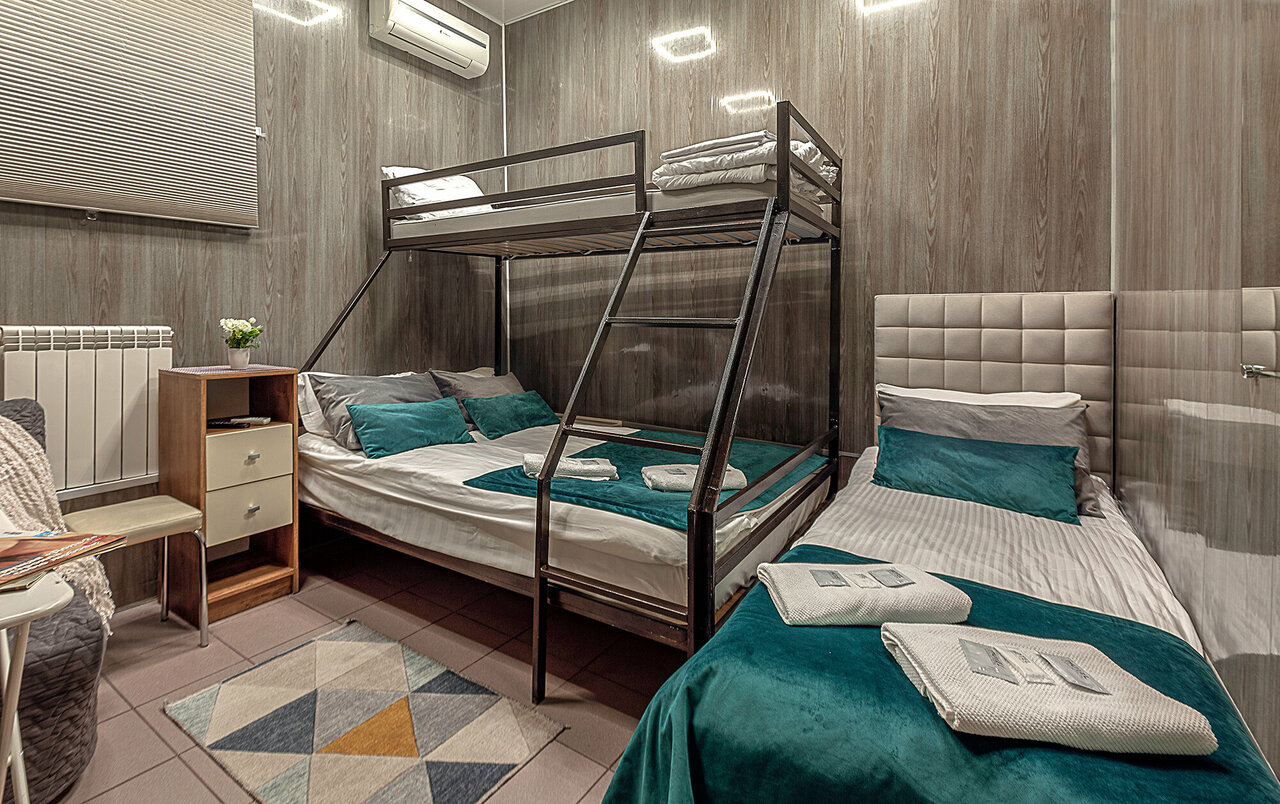 Семейный, пятиместный.Для Вас в номере доступно:- Двухярусная трехместная кровать- Кровать 80*200 Бокс Спринг, матрас независимыми пружинами- Кресло-кровать 100*200.- Постель кипельно-белая, сатин-страйп, полотенца-все это мы для Вас стира...