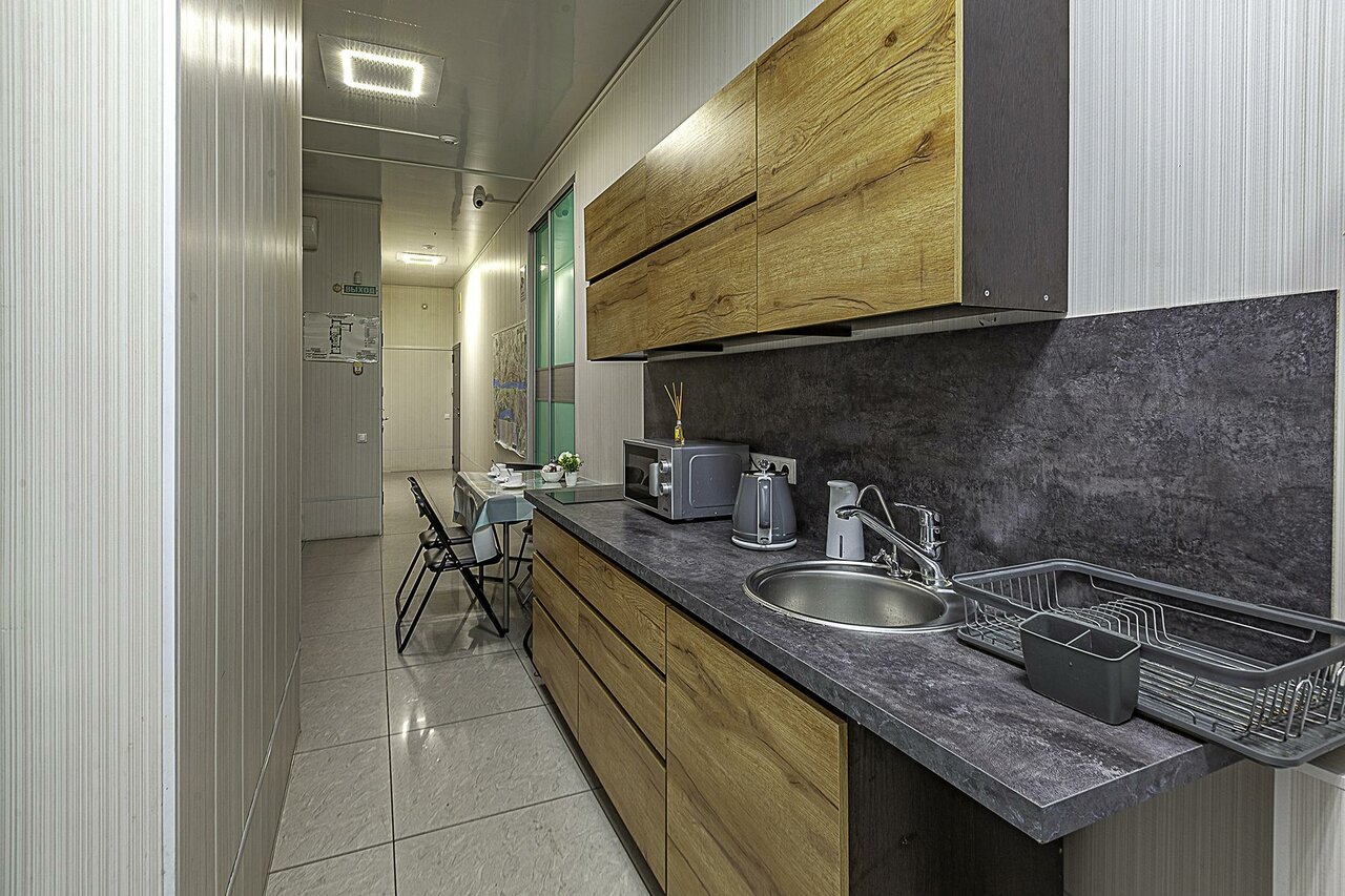 Самое главное- это кровать, удобная мягкая. Номера не большие, в общих помещениях уборка каждый день, на счет комнат не знаю, сколько были — не было. Из минусов в нашем номере не было шкафа даже маломальского, сумки и одежду убрать некуда, все лежит на полу, кухня и обеденная зона -общие, находятся прямо напротив туалета и душевой. (То что они раздельные — это плюс). Удобно заходить, ввел номер, который тебе скинули и не боишься что можешь потерять ключи. Находится недалеко от жд вокзала, рядом планетарий. Магазины недалеко.