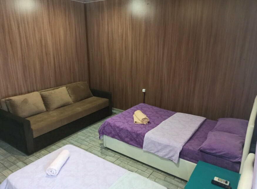 Недорогая придорожная ночлежка В целом видно, что старались сделать красиво и комфортно, но с вентиляцией в номере есть проблемы из за чего возникли проблемы в целом во всем номере. Да, плесень на затирке в ванной комнате, влажный воздух в номере, а так как отель в двух метрах от дороги, то с открытым окном не особо комфортно спать (с закрытым шум улицы почти не слышен) Завтрака нет! Если на каком то бронивике увидели завтрак, то не обманывайтесь, его нет! Насилии есть сомнение на этот счёт, то лучше позвоните напрямую в гостиницу, чем потом звонить и выбивать свои деньги обратно В целом номер хороший, просторный. В моем было одна большая типа двуспальная кровать, одна одноместная и один диван. Постельное вроде чистое, неприятного запаха нет В номере кондиционер, обогреватель, телевизора, чайник, чай черный и зелёный. Также есть гигиенический набор из геля для душа и шампуня Пол кафельный, холодный, так что берите обувь