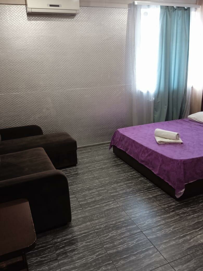Удобства: кухонный уголок, чай/кофе в номере, тапочки, вентилятор. Время заезда/выезда: 14:00 / 12:00. Контакты: +7 (919) 793-55-00.