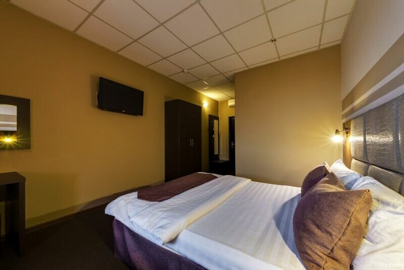 Начну с плюсов: - чисто - уютно - приветливый персонал - новая мебель - удобный матрац - теплое одеяло (на двоих — это лично для меня минус) - очень близко остановка трамвая. - заказывали номер стандарт, его почему-то не оказалось и нам без доп платы дали полулюкс. Минусы: - женщины с ресепшена очень громко общаются в любое время суток очень мешают спать. Особенно в 6 утра - бронируя, не понимаешь какая комната тебе попадется. - дверь у номера такая тонкая. Каждый пук слышно за дверью. - железная дорога очень близко (меня это не испугало, так как всю жизнь прожила под стук колёс), очень шумит. - постельное белье уже видимо не отстирывается, с каплями крови и непонятно чего. - мыло в странных упаковках, выдавливается так много за раз, что таким количеством помыться всему можно. - полотенца старенькие, по краям уже расплетаются. С другой стороны, это не 5 звёзд. В целом довольно достойно.