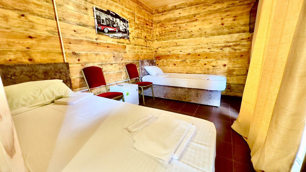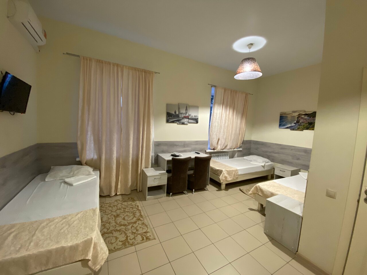 Номер был эконом. С двумя детьми вместились, сдвинув кровати. Когда сдвигал кровати, нашел плесень на стене со стороны душа и ребенок увидел пауков, плохо спал потом. Слышимость в этом номере очень хорошая. Всю ночь сверху кто то ходил по скрипучей доске пола. А рядом в номере кто то храпел. Был включён в стоимость завтрак и бассейн. Бассейном не воспользовались, завтрак обрадовал- все было вкусно.