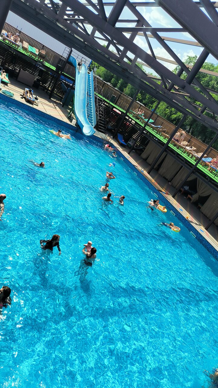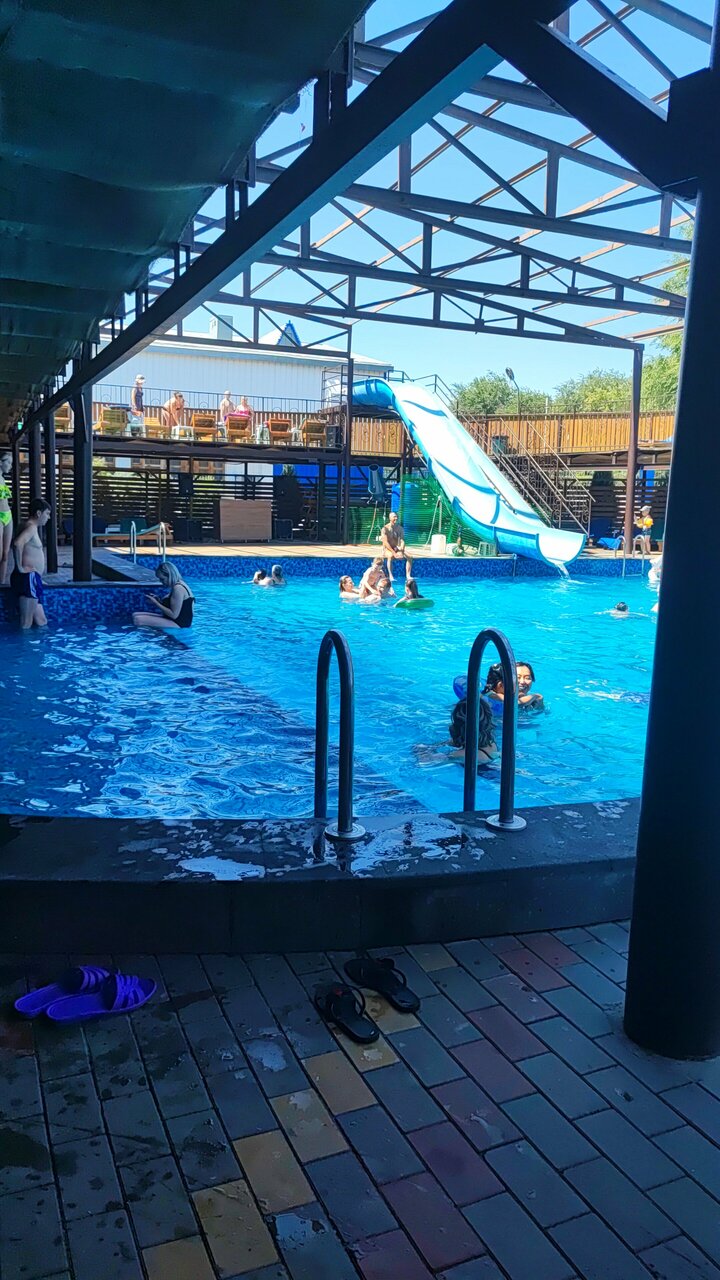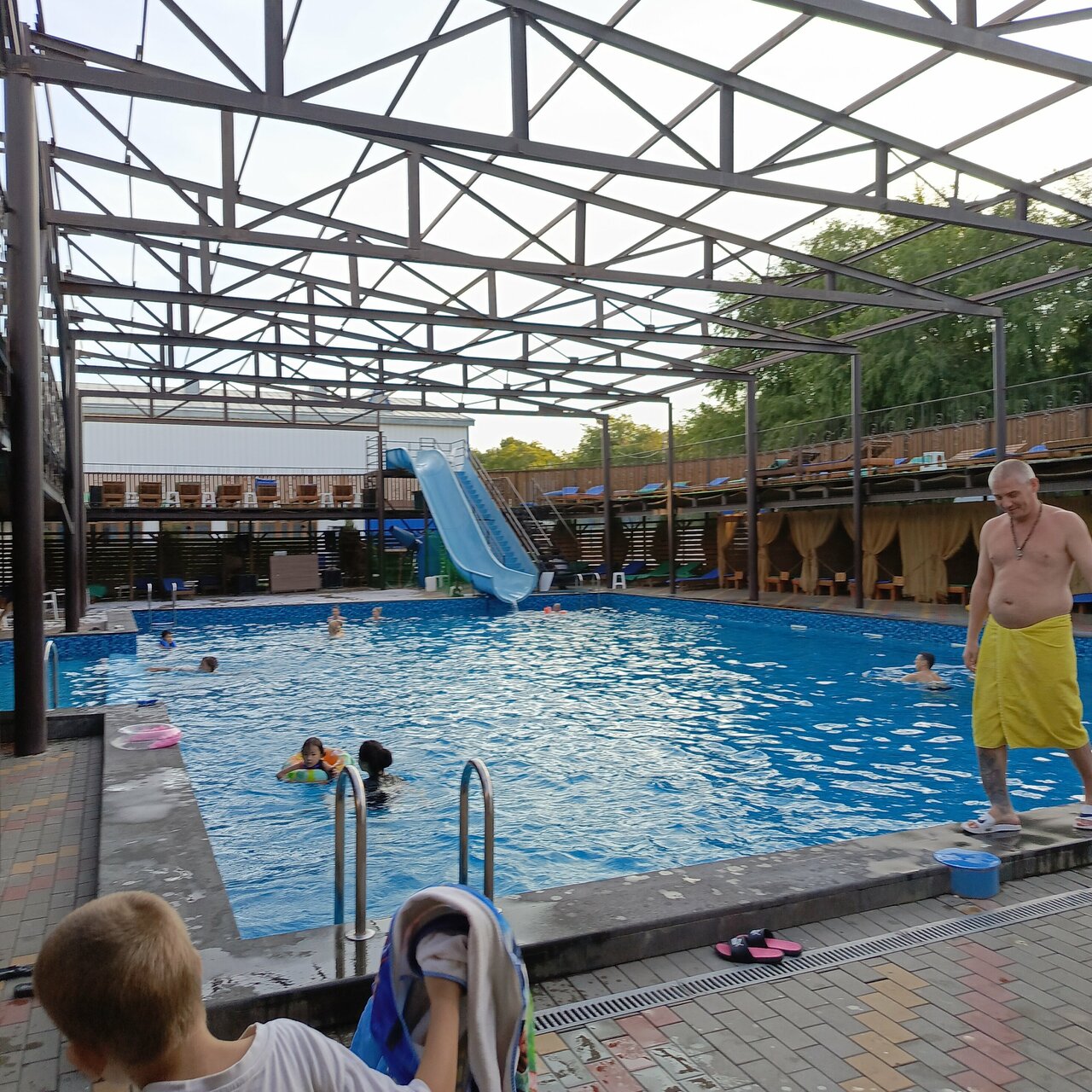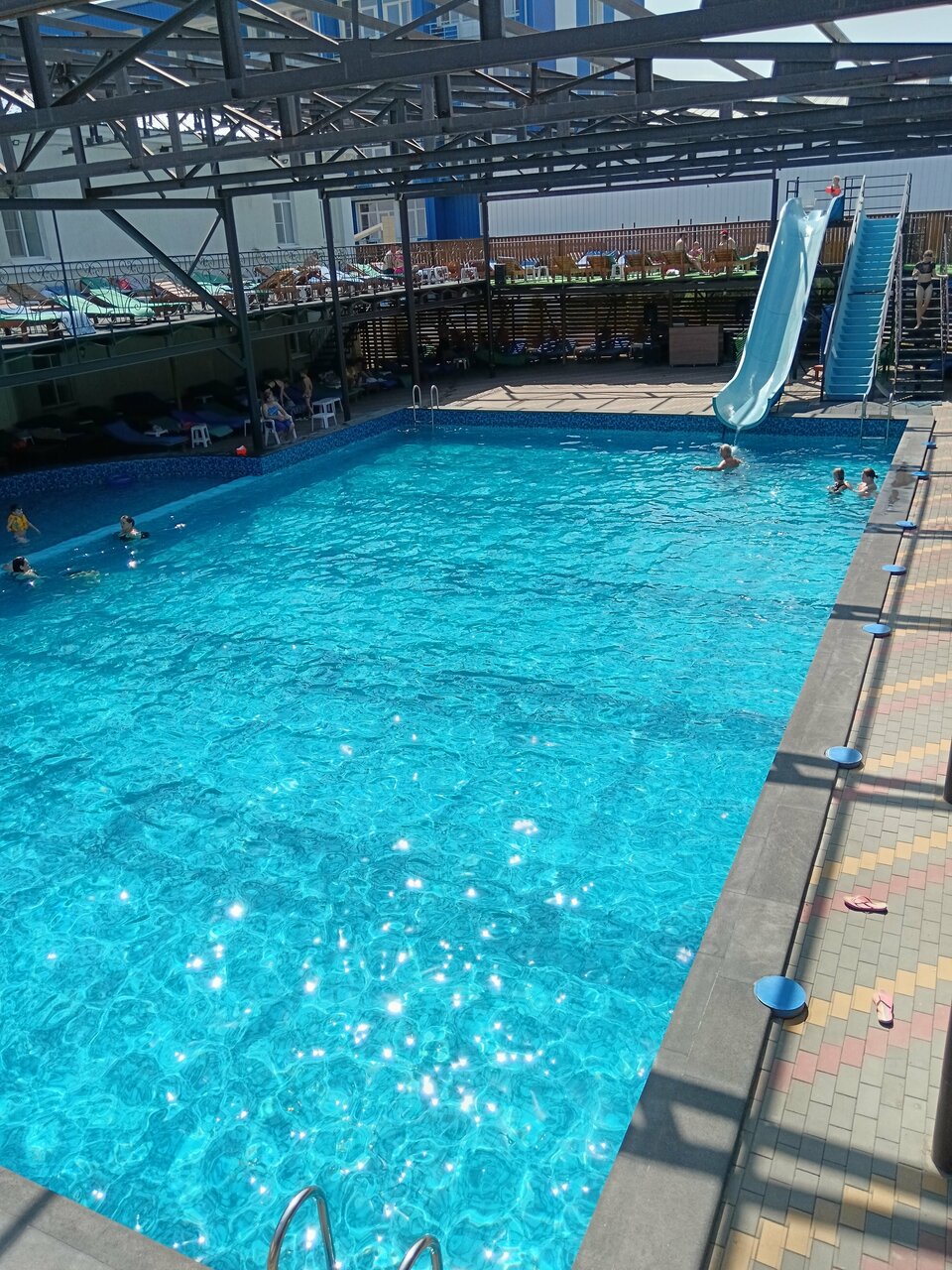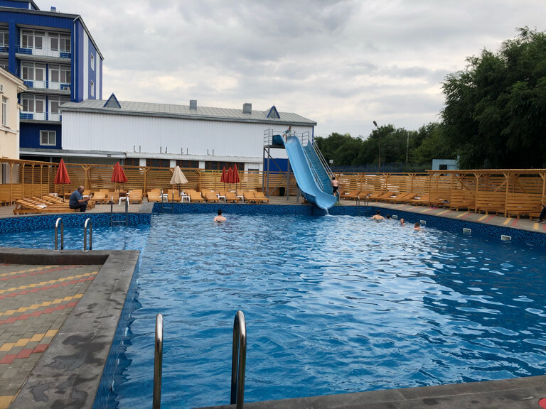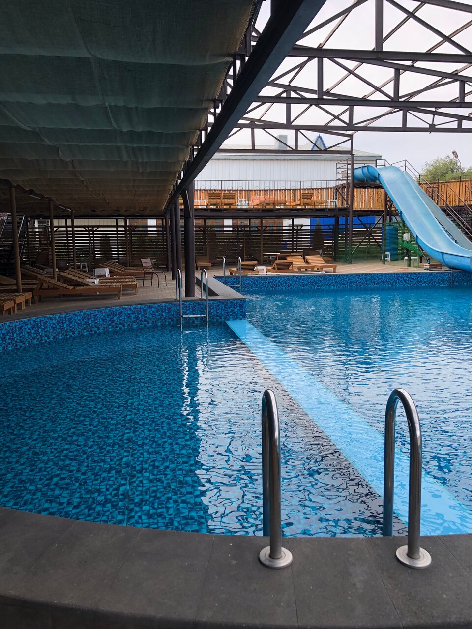 Хорошее место отдыха для всей семьи! Бассейн с горкой, сауна, кафе, лежаки — все понравилось. Водичка конечно хлорированная, но это для необходимости и безопасности.