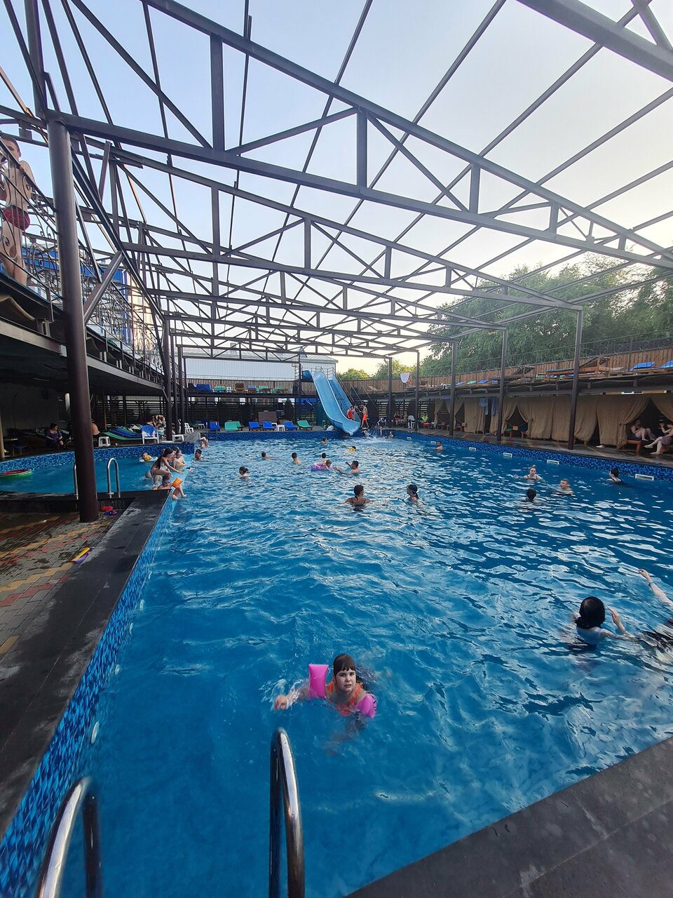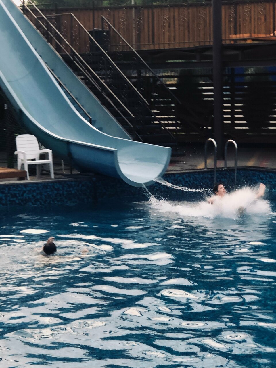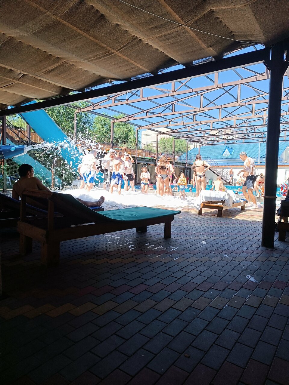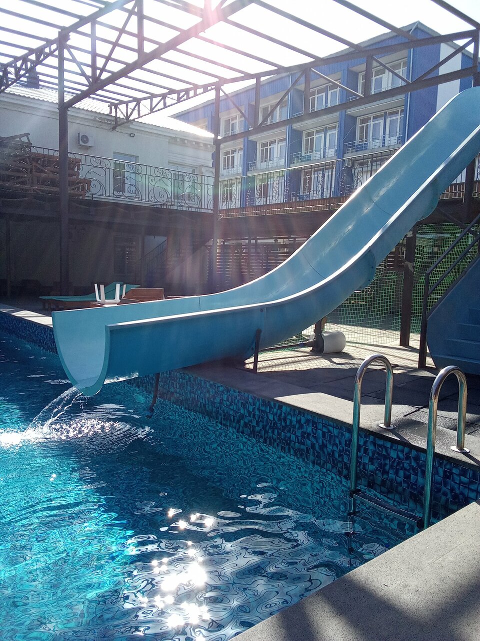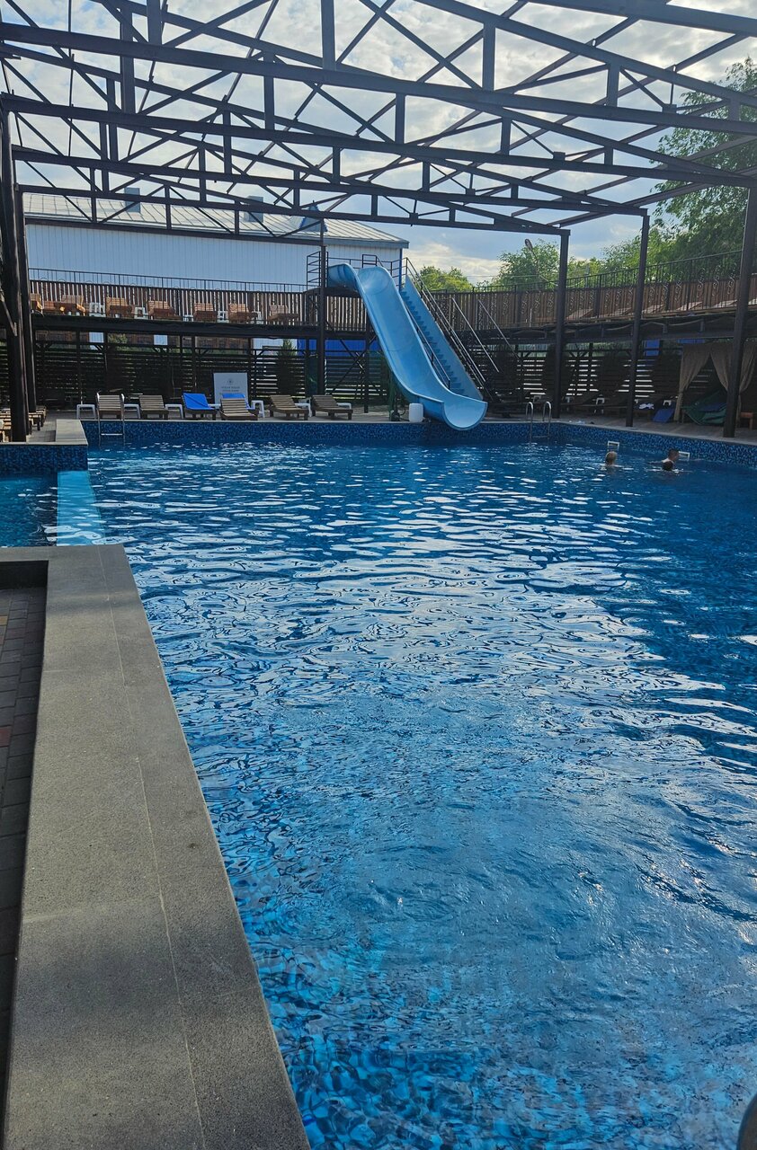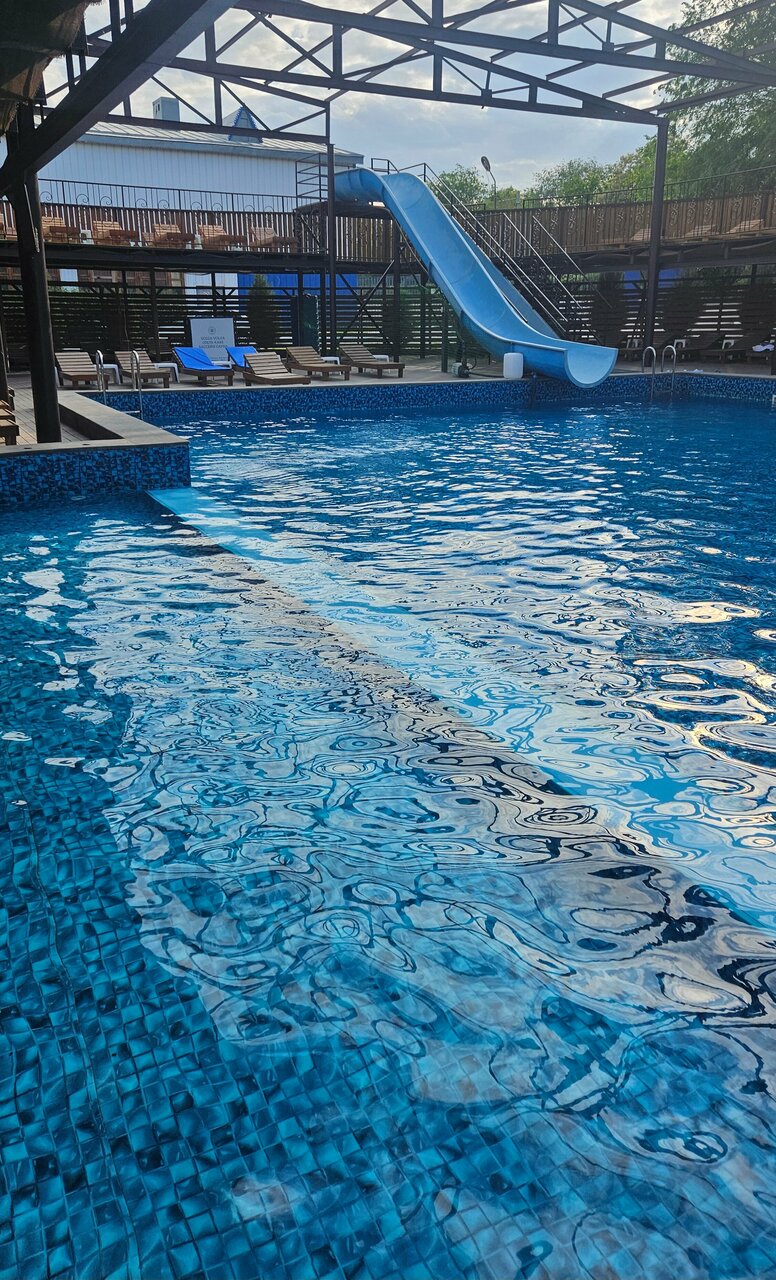 Хорошее место отдыха для всей семьи! Бассейн с горкой, сауна, кафе, лежаки — все понравилось. Водичка конечно хлорированная, но это для необходимости и безопасности.