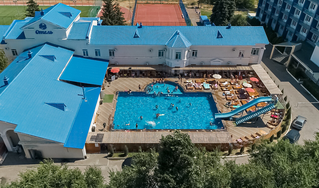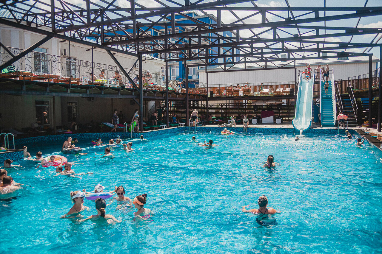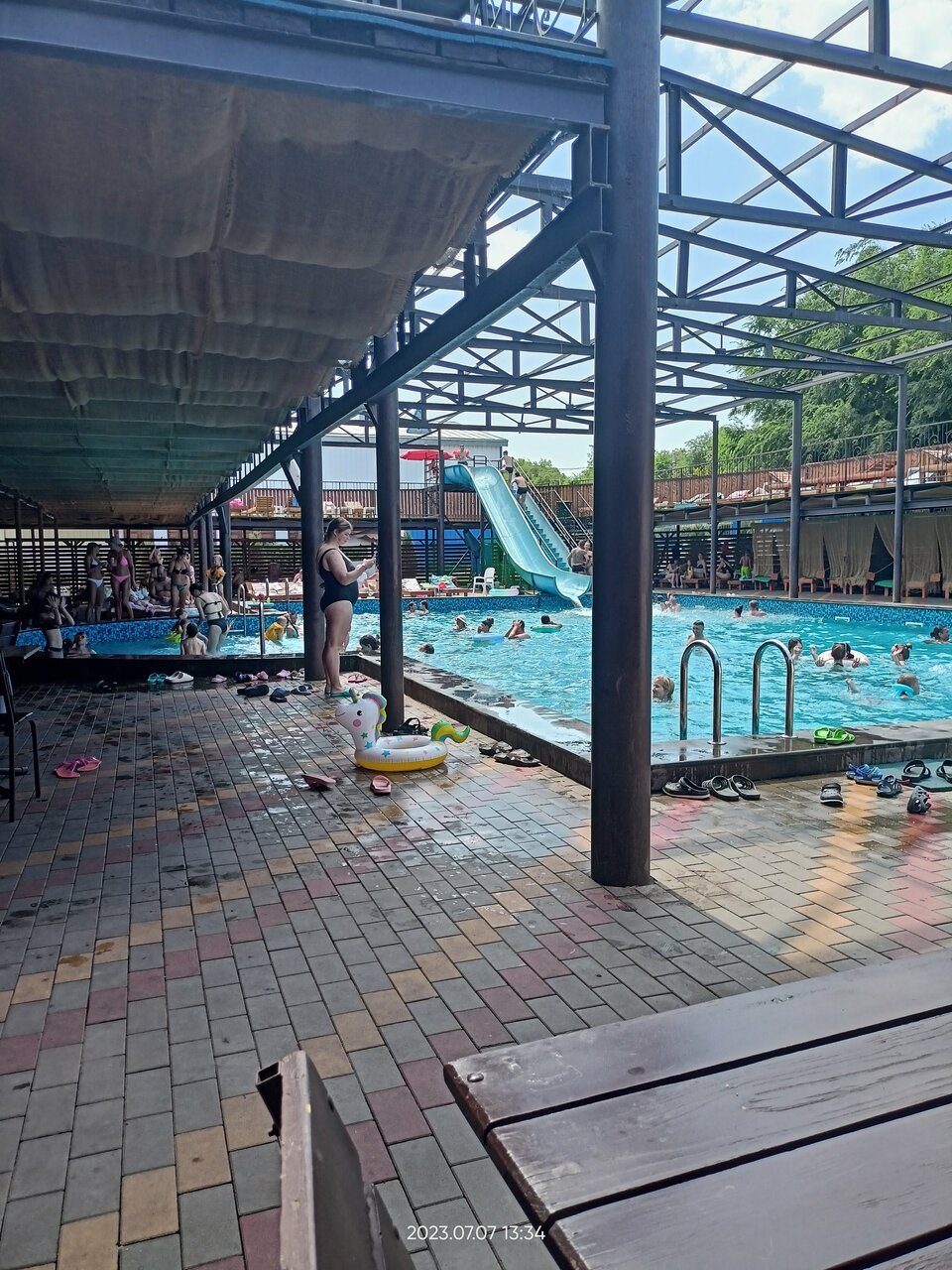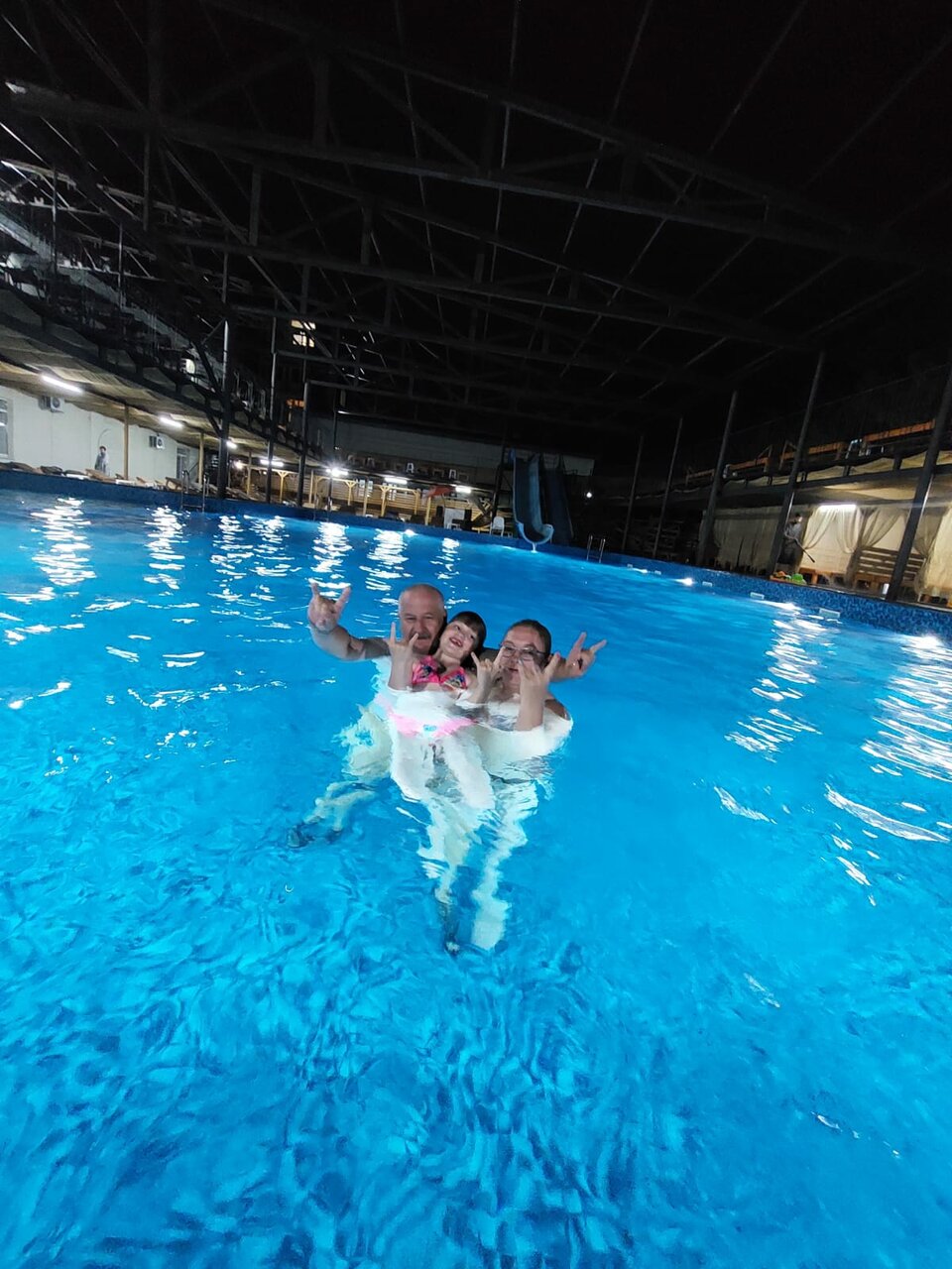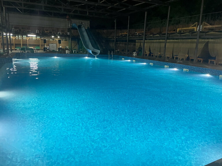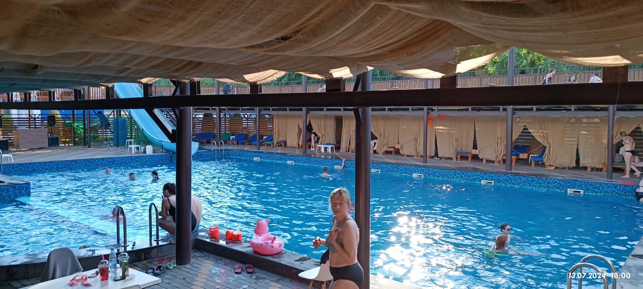 Хорошее место отдыха для всей семьи! Бассейн с горкой, сауна, кафе, лежаки — все понравилось. Водичка конечно хлорированная, но это для необходимости и безопасности.