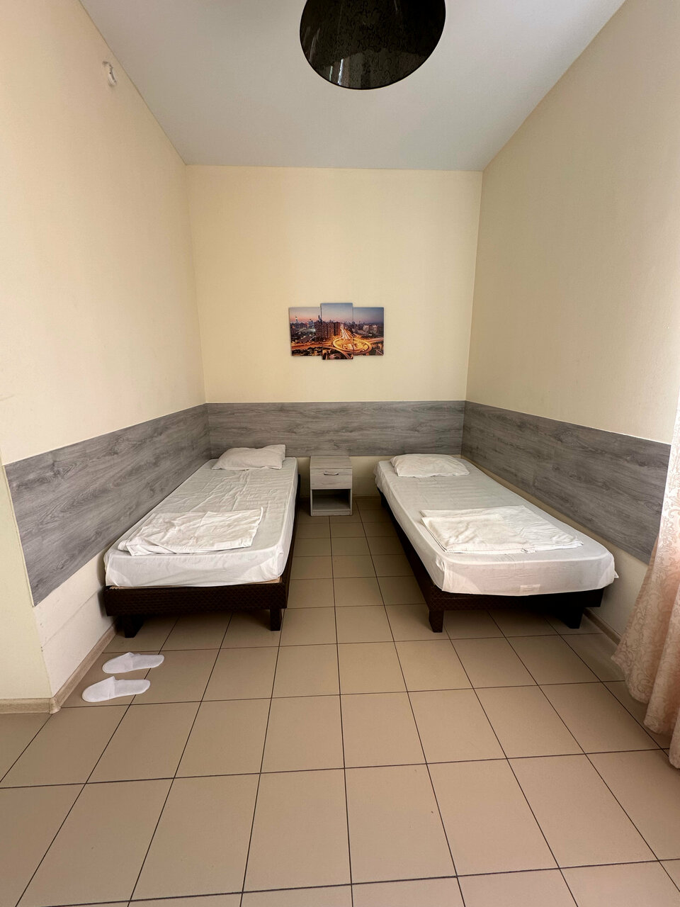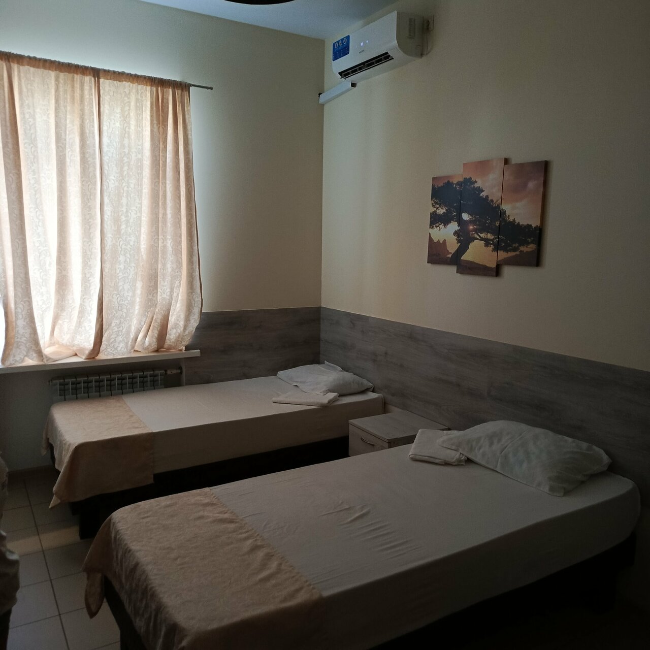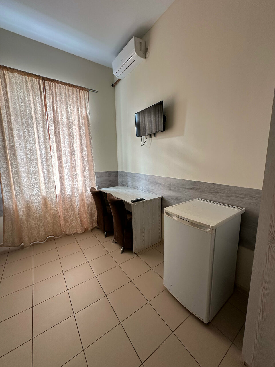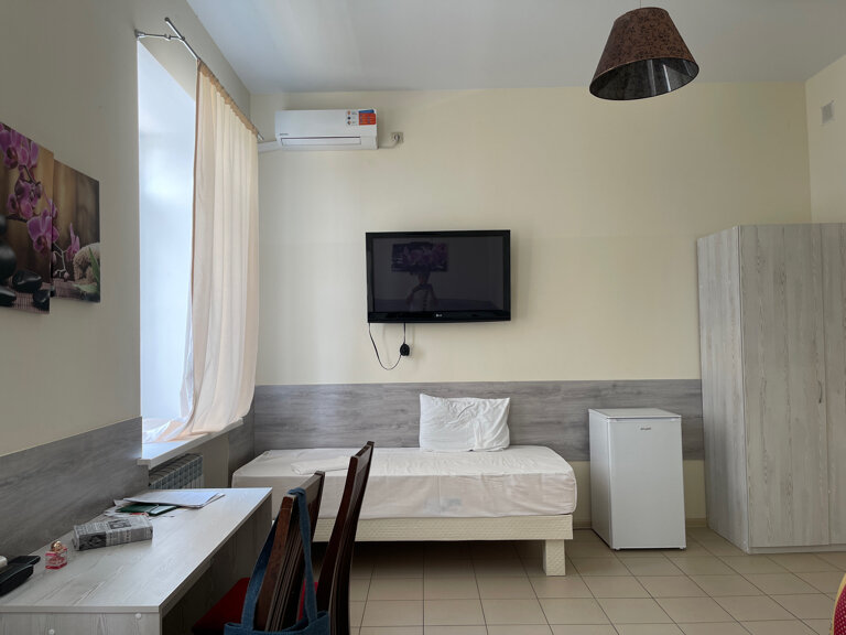 Оказались здесь случайно, бронь слетела, а из-за наплыва желающих сходить на Суперкубок это было лучшее из возможного. Спартанский номер, но есть всё необходимое — кондиционер, душ, туалет, холодильник. Кухня очень даже понравилась, брали блюда на мангале. Огромный бонус — это наличие бассейна с горкой, для проживающих бесплатно. В целом, всё понравилось, кроме удалённости от центра города, такси в помощь)