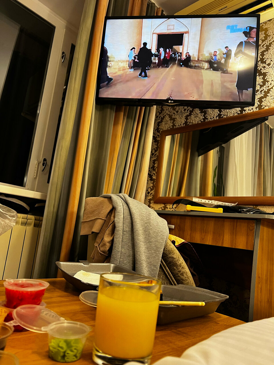 В гостинице не жили. Ели в кафе на ц этаже бизнес-ланч. В зале чисто, туалет перед входом в кафе. Работает кондиционер. Обслуживание хорошее. Меню на планшете. Порции большие, ожидание не долгое. Борщ 100 руб, солянка 80 руб. Всё вкусно!