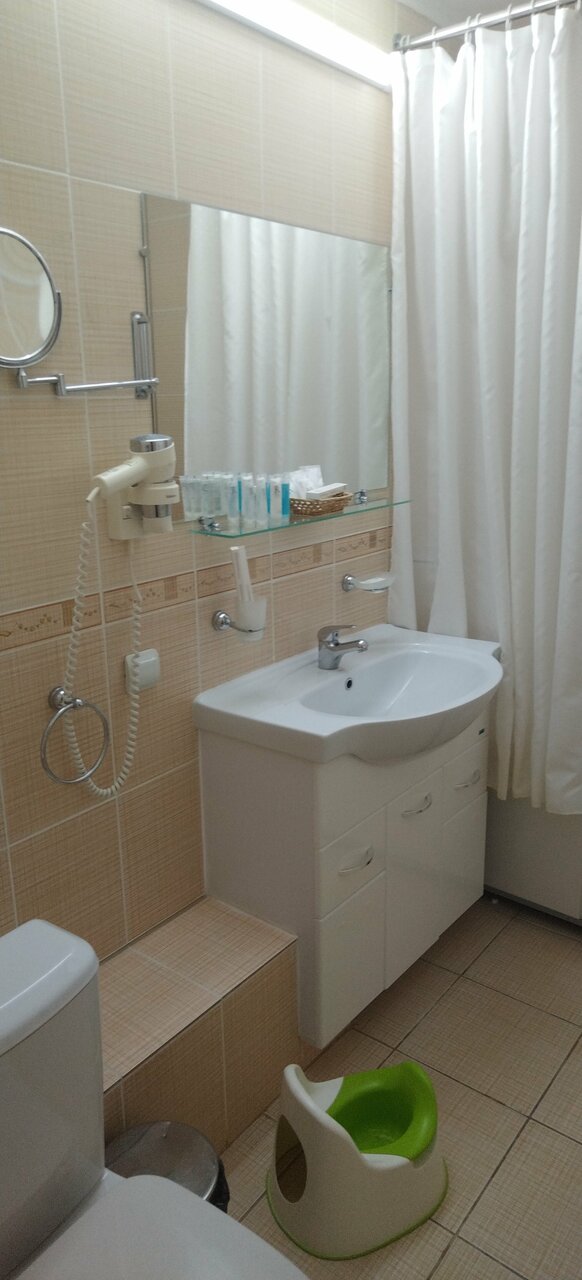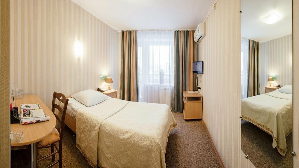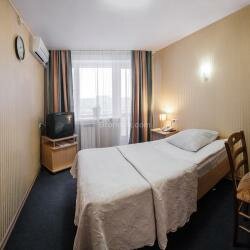 Очень качественная гостиница, хотя и три звёзды. Персонал вежливый, отзывчивый. В номере все необходимое есть, телевизор, холодильник, в санузел халат, шампуни. А кафе вообще супер вкусно и очень бюджетно!