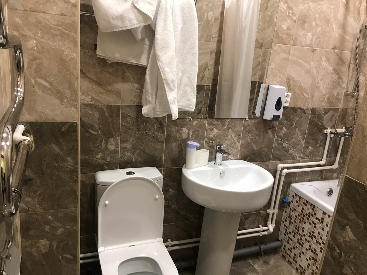 Отель свежий, номера чистые, в номере есть хороший телевизор со смарт тв, что очень удобно. Кровать для сна вдвоем не удобна, состоит из 2 матрасов. В номере нет тапочек, халата, фена и зубной щетки. В целом довольна отелем, цена качество полностью соответствует.