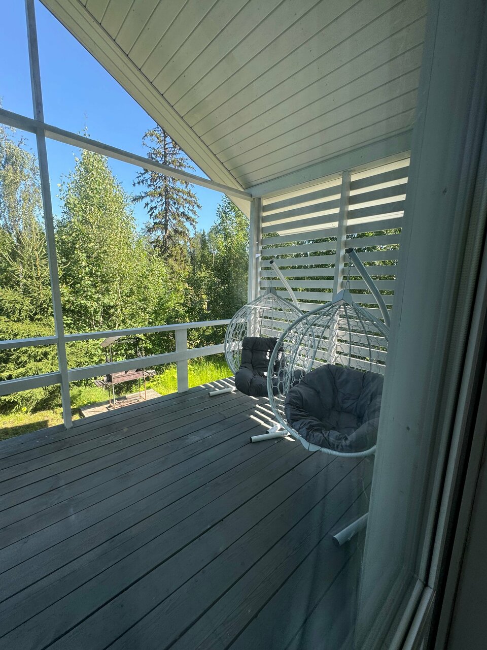 Тихое спокойное место, свежий дом. Много места для 2-х семей с детьми. Открытая терраса и мангал, сауна и камин. Неплохая кухня и огромная гостинная. Озеро в 3-5 мин хотьбы.