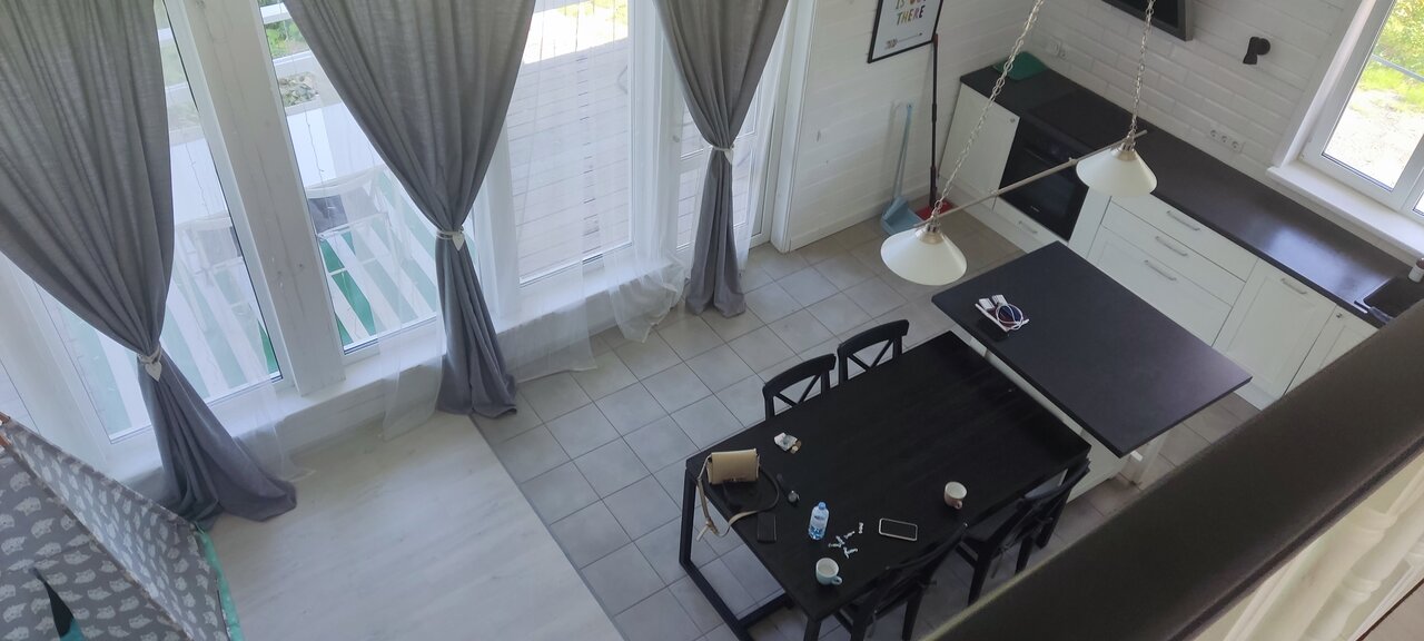 Респект за бесконтактное заселение! Мы приехали после полуночи. Во всех предыдущих коттеджах, которыми мы интересовались, нужно было встретиться именно с хозяином, чтобы он заселил, принял. В такое время они принимать не хотели, поэтому один за другим варианты отсеивались. Панорама стала единственным сервисом, где согласились на заселение, без личного присутствия хозяина или менеджера. Это очень здорово! Но и про сам дом мы можем говорить бесконечно. Он огромный, с высокими потолками, очень просторный, светлый и тёплый. Есть спальные места для несколько человек. Нас пятеро и мы спокойно расселились.