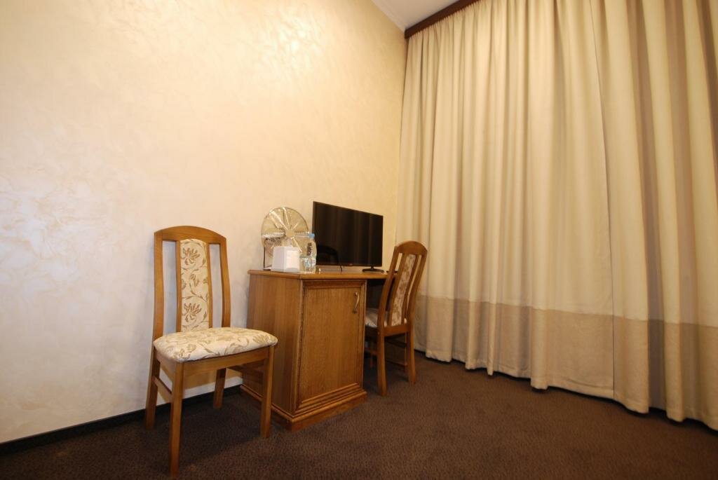 Сама гостиница отличная, хорошее обслуживание, чистые номера, нормальный завтрак. Но сама гостиница находится рядом с СИЗО. мы взяли семейный номер, окна выходят на колючую проволоку….