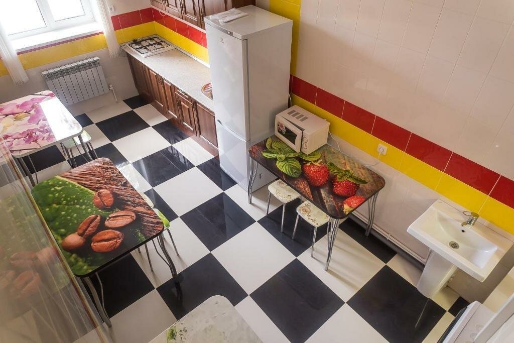 - Наличие кухни с холодильником, чайником, микроволновкой, посудой.