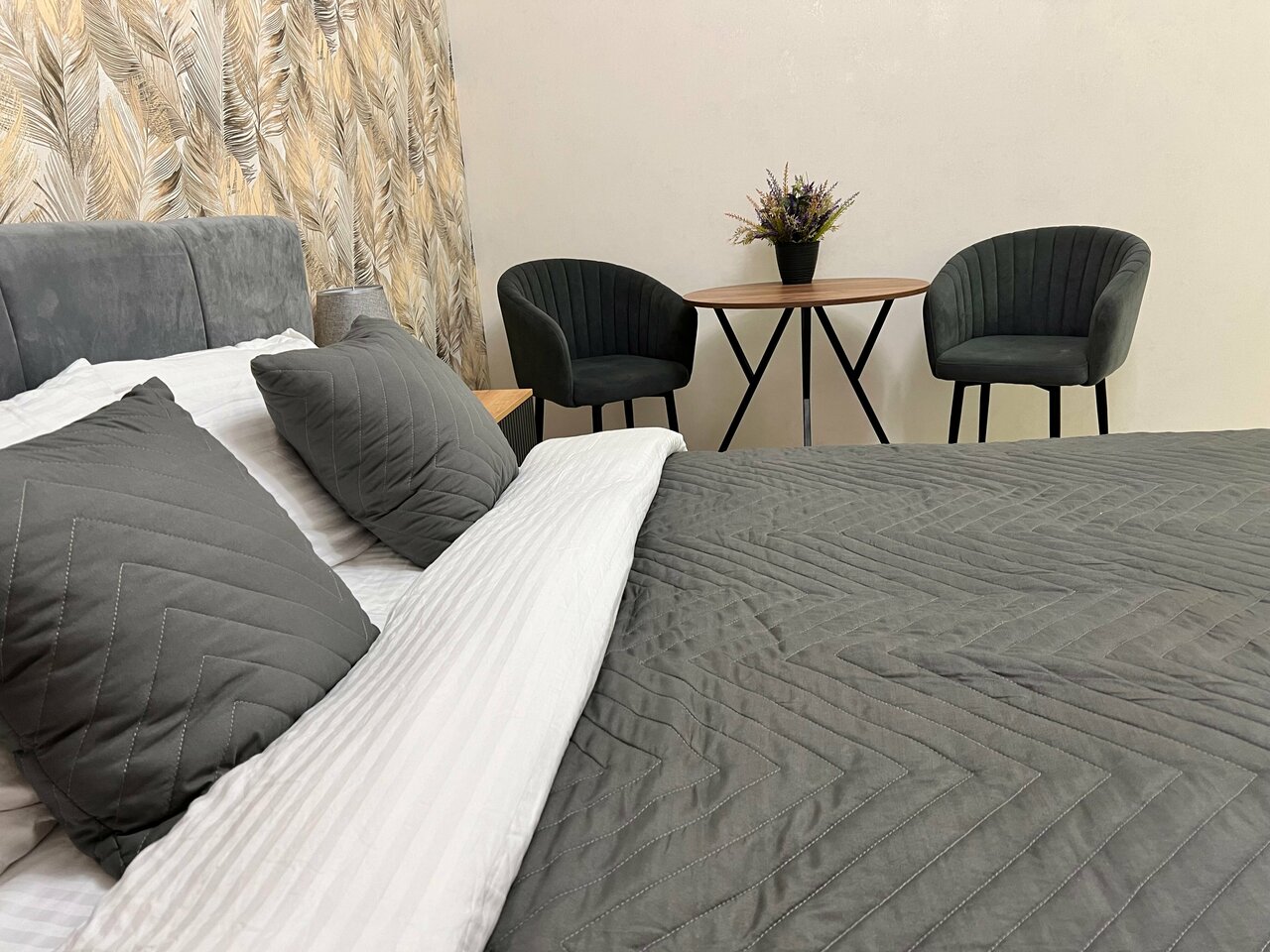 Просторный однокомнатный номер 20м подходит как для семейного отдыха, так и для одноместного комфортного размещения.Номер оборудован современной мебелью.