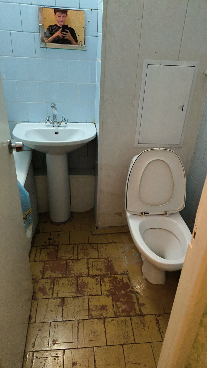 Попали в СССР убирали мусор 2 раза в 5 дней, полка бв как спиннером,шкаф тоже всё очень сильно скрипело. была дырка в полу, клопы тараканы