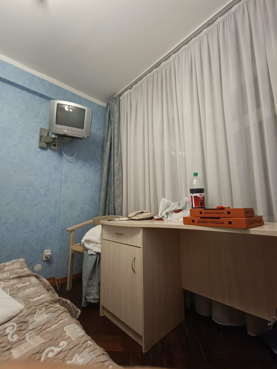 Проживали в гостинице Ахтуба зимой. Было холодно, батареи почти не работали. Но, дали оьогреватели, которые тоже работали не самым хорошим образом. Как итог — я заболела. Но это не самое удивительно. Как только мы зашли в номер, на люстре нас ждал сюрприз — приклеенная прокладка.
